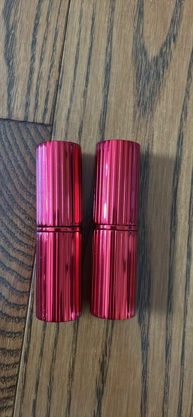 Two Charlotte Tilbury Matte Revolution lipsticks in the shade hollywood vixen Each lipstick has a red metallic ribbed case. Full-size lipsticks.
