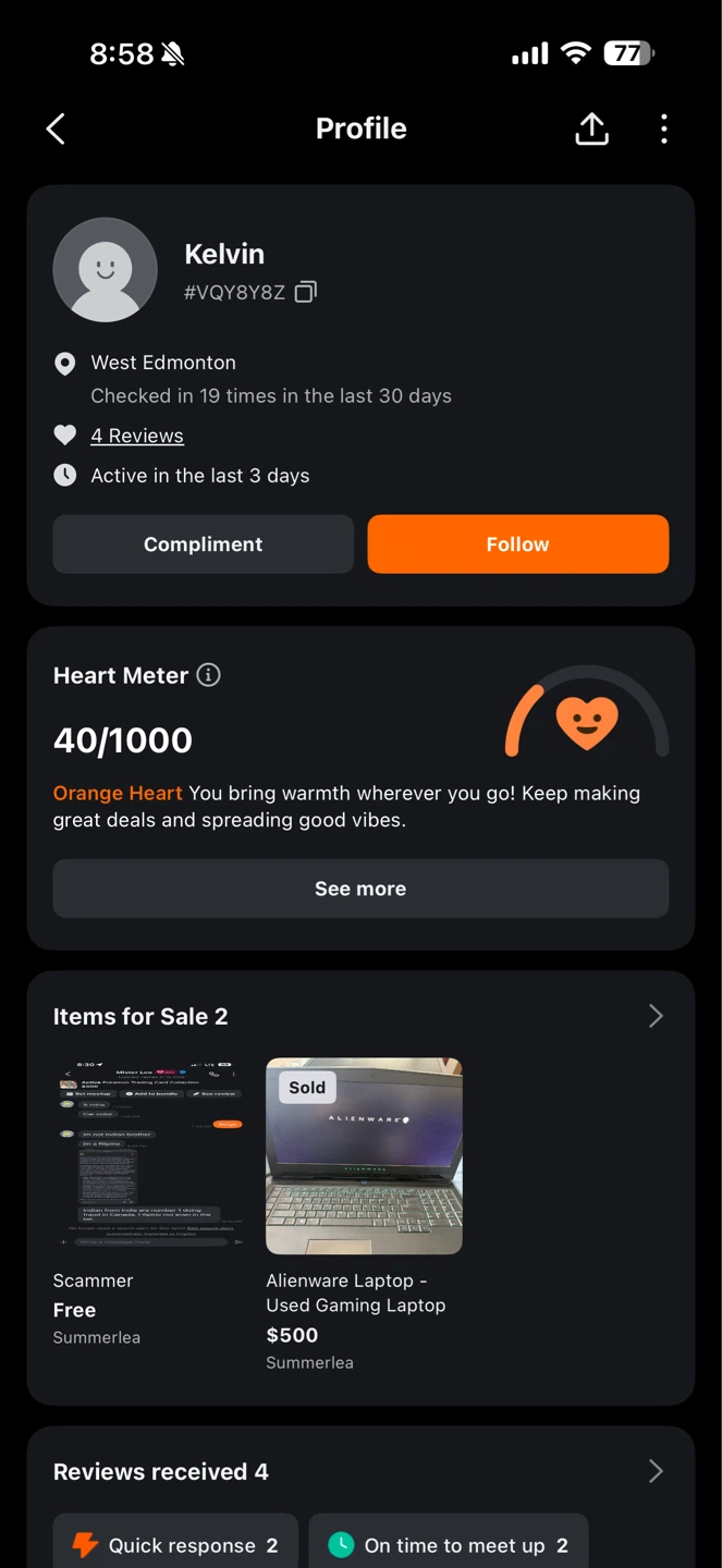 Accusing me as a scammer is different to my reviews and PINK HEART rating in Karrot.
