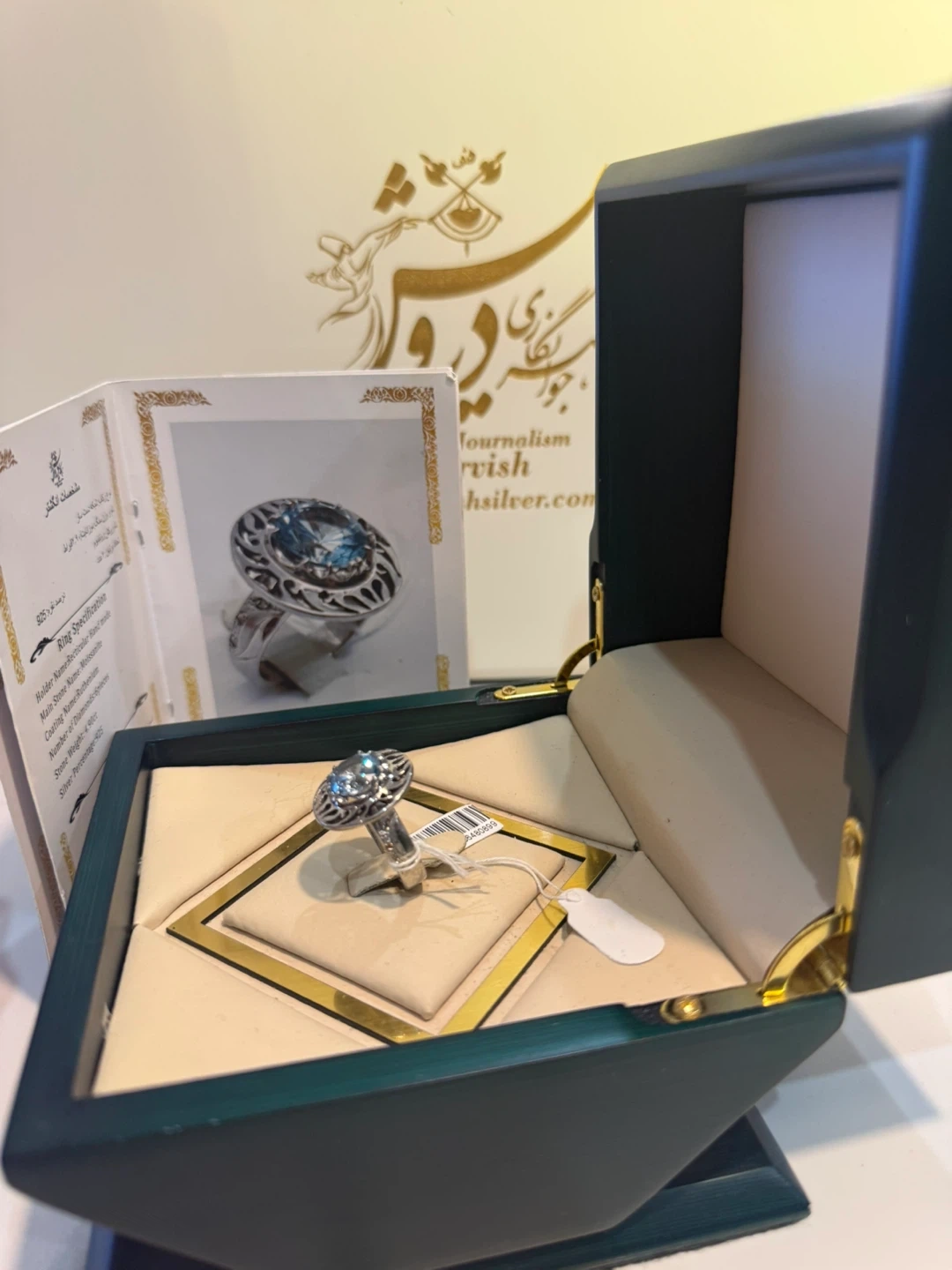 Selling a brand new Darvish Silver ring. It's a size 925. The main stone is Moissanite and the coating name is Ruthenium. The ring has 6 pieces of diamonds and the stone weight is 4.90ct.
