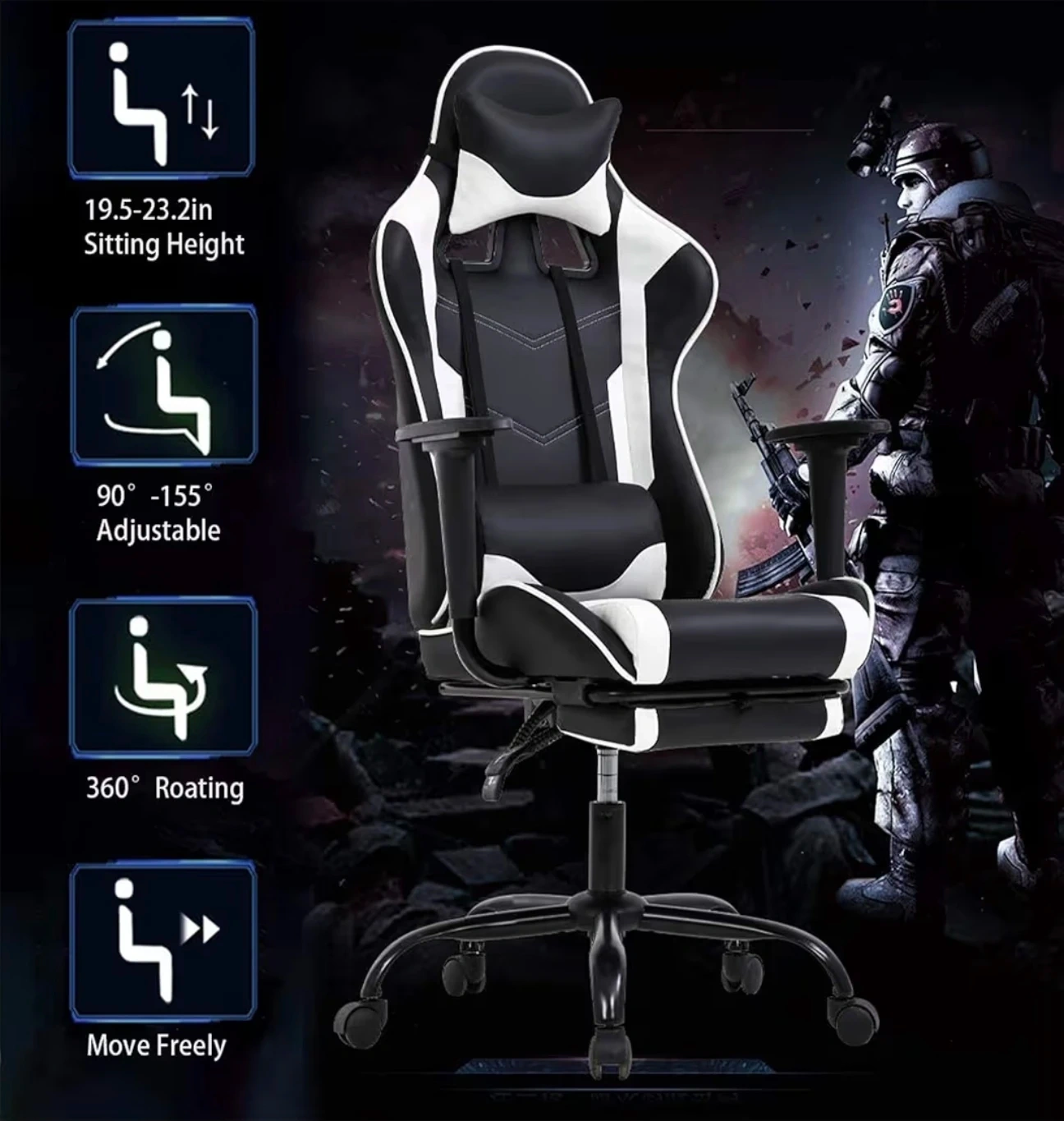Ergonomic gaming chair with lumbar support for sale
