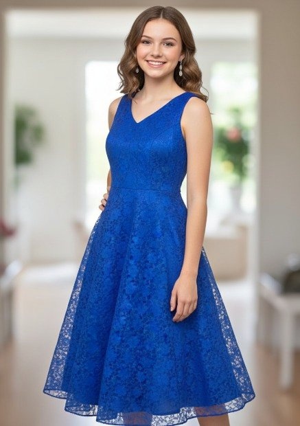 Stunning Royal Blue Lace Dress – for teen girl