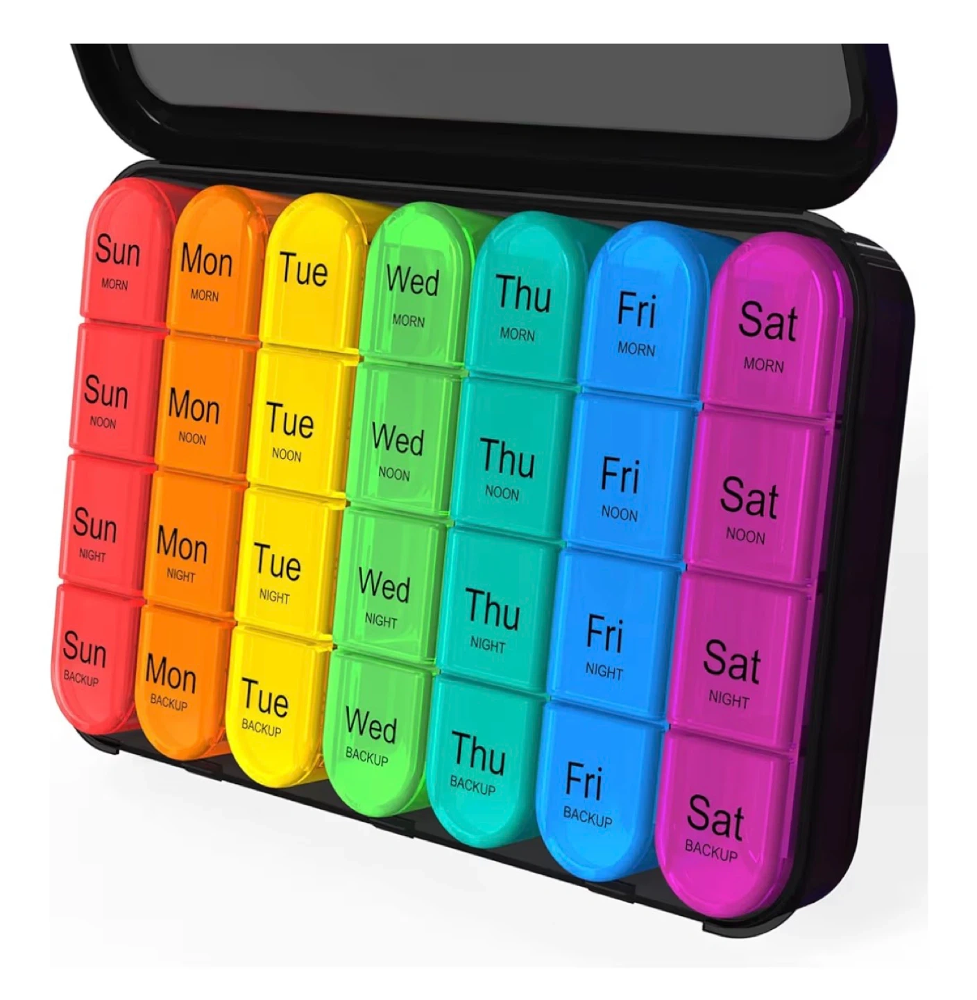 Excellent Printing - Bold letter marks on the daily pill organizer will remind you what to take by the day. The printing of the medicine organizer have passed the critical 3M adhesives & tapes test, won't rub off for over 5000 times of use