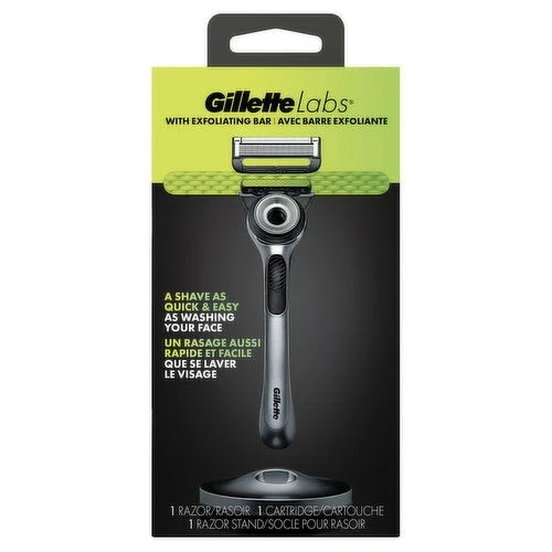 Get a close and comfortable shave with this GilletteLabs razor, featuring an exfoliating bar for a smooth finish; the product includes one razor, one cartridge, and a stand. This razor is brand new, ready to provide a superior shaving experience, making your grooming routine as quick and easy as washing your face.