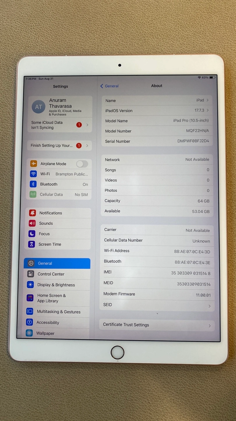 64GB storage, Wi-Fi + Cellular model (unlocked, ready for SIM).