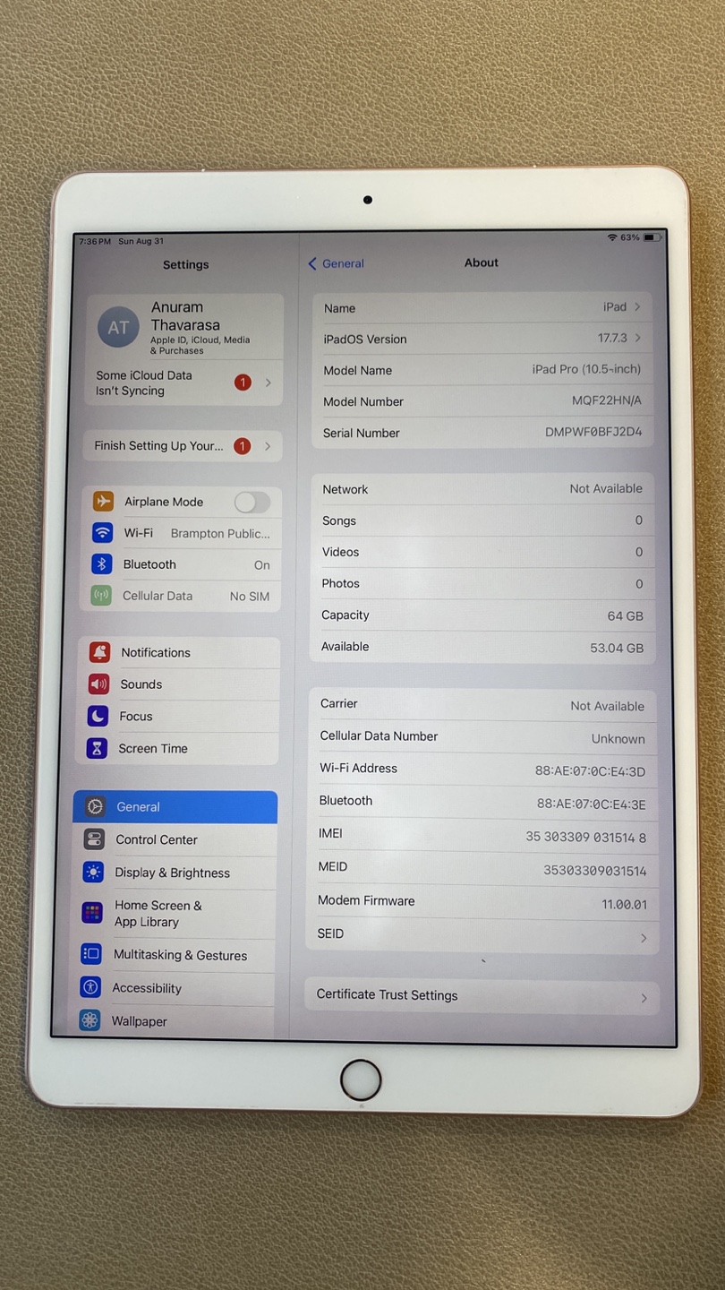 64GB storage, Wi-Fi + Cellular model (unlocked, ready for SIM).