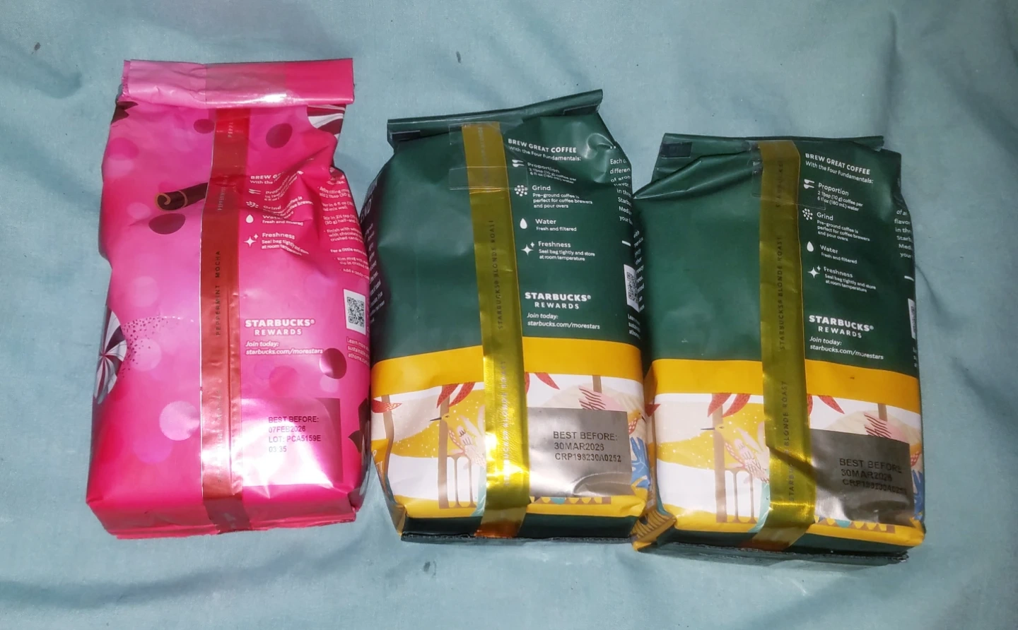 2 Starbucks Veranda Blend Blonde Roast Coffee +Peppermint Mocha