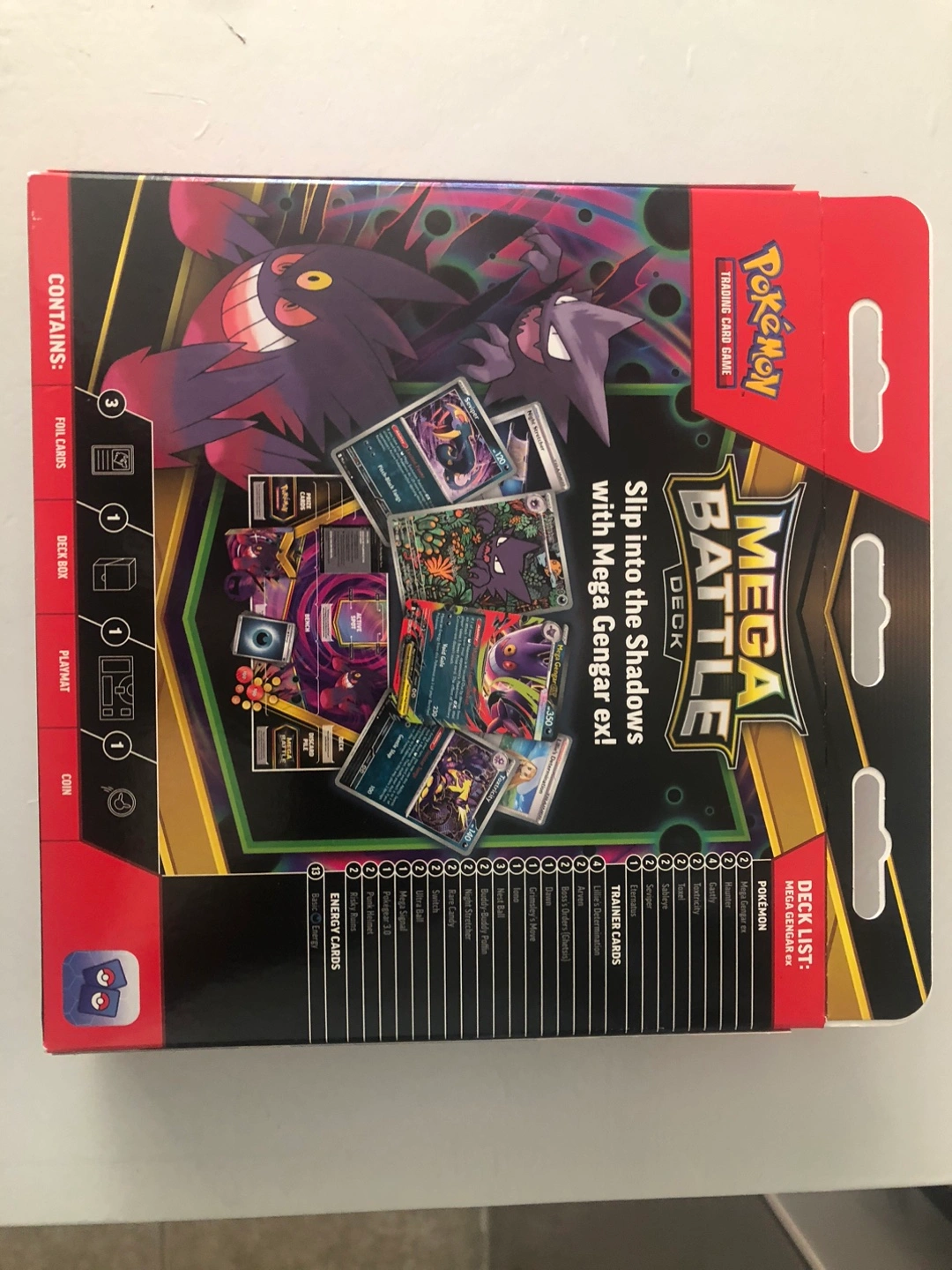 This is the Pokemon Mega Gengar EX Mega Battle Deck. It contains 1 deck box, 1 playmat, and 60 trading cards. Great condition fully sealed
