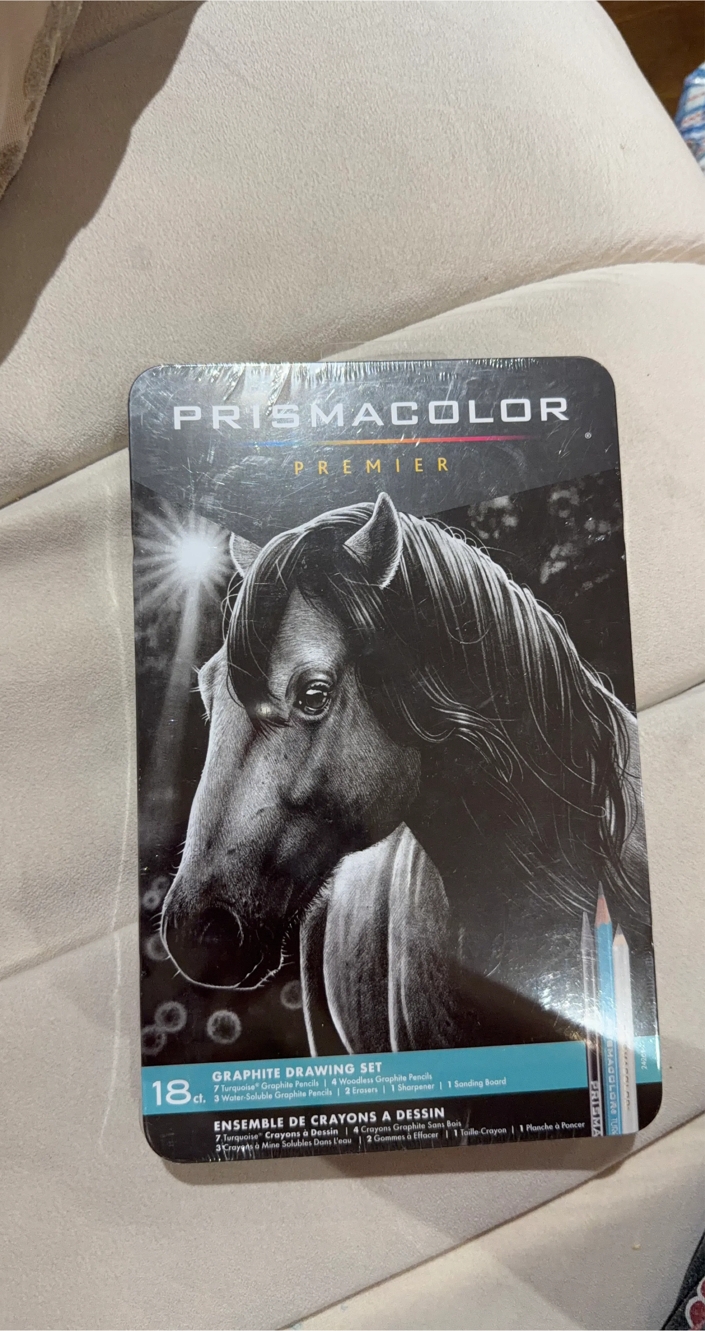 This Prismacolor Premier Graphite Drawing Set includes 7 Turquoise Graphite Pencils, 4 Woodless Graphite Pencils, and 3 Water-Soluble Graphite Pencils. It also comes with 2 erasers, 1 sharpener, and 1 sanding board. It's great for artists looking for a versatile graphite sketching experience!