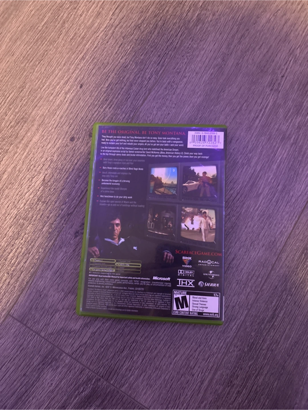 Step into the shoes of Tony Montana in Scarface: The World Is Yours for the XBOX. This action-adventure game lets you rebuild Tony's empire. It's rated M for Mature.