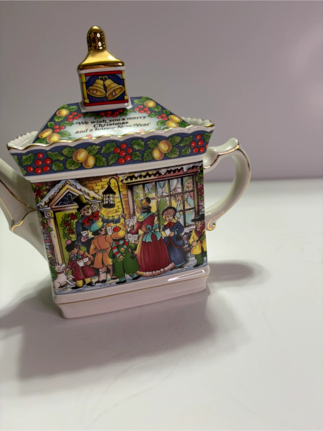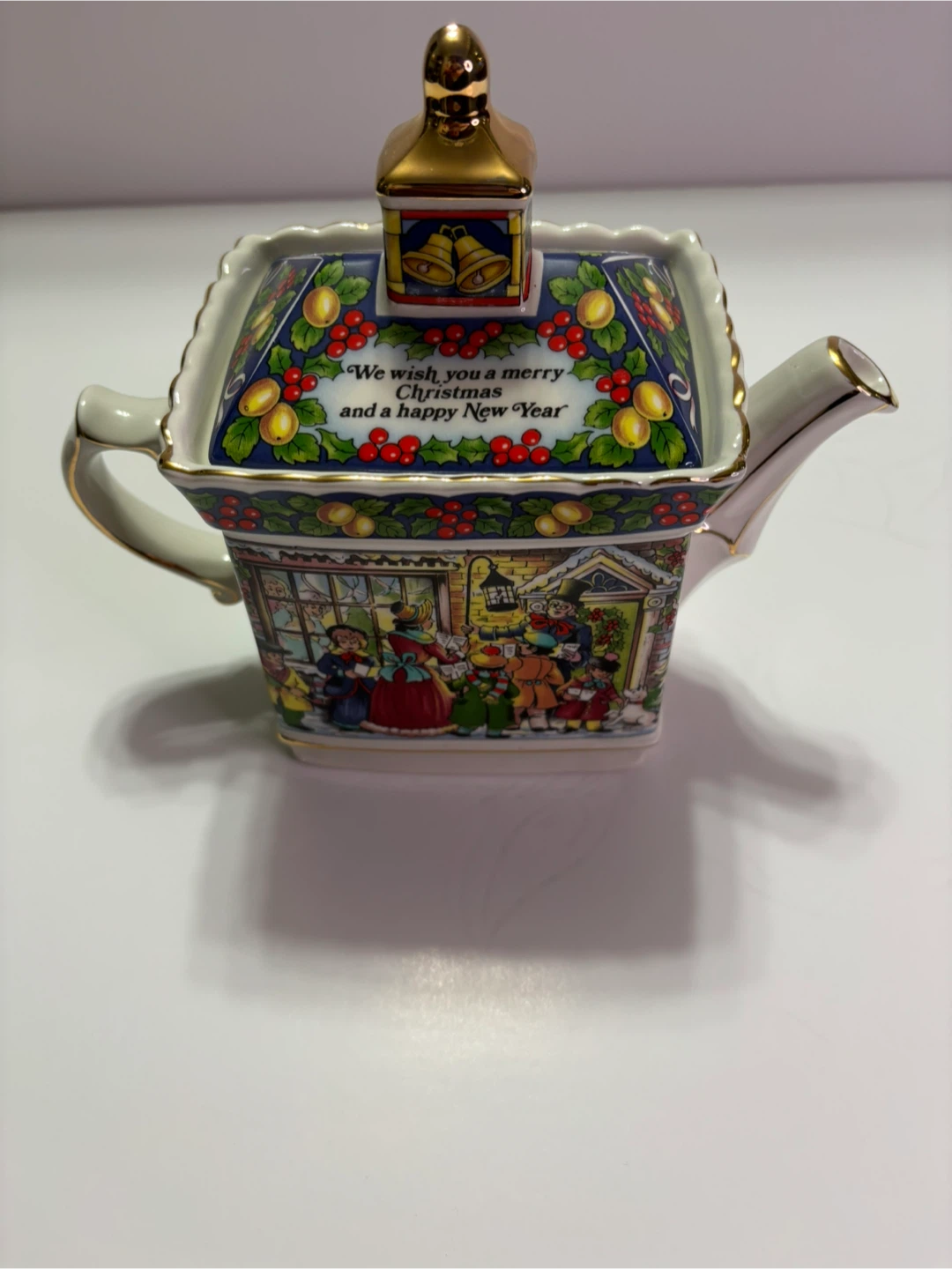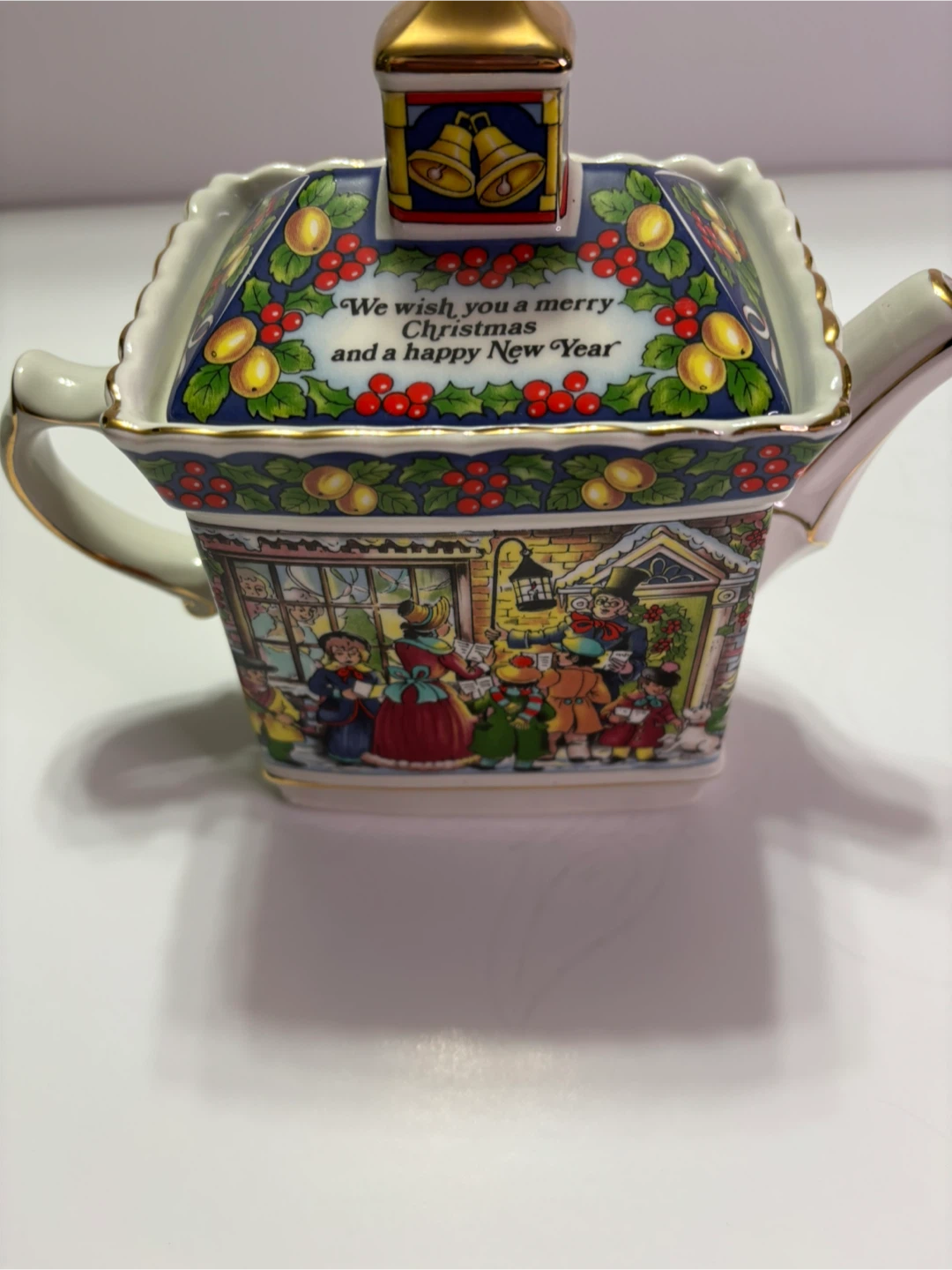 Royal Adderley 'A Christmas Carol' teapot in good condition! It features a festive design with "We wish you a merry Christmas and a happy New Year" inscription.