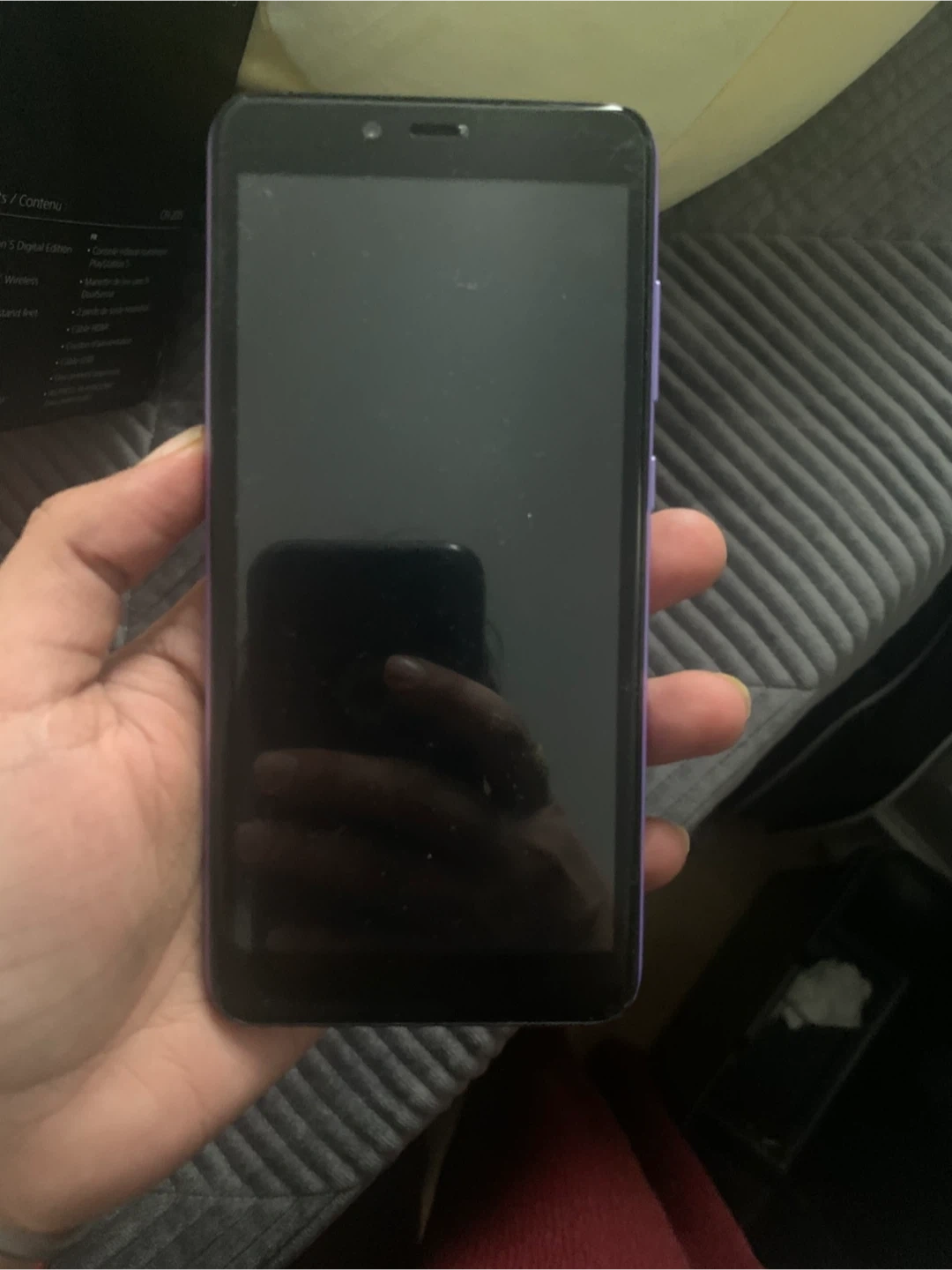 Sky Devices Elite P55Max smartphone in purple. This device features an HD camera on the rear. It's a dual SIM phone. Perfect for everyday use!