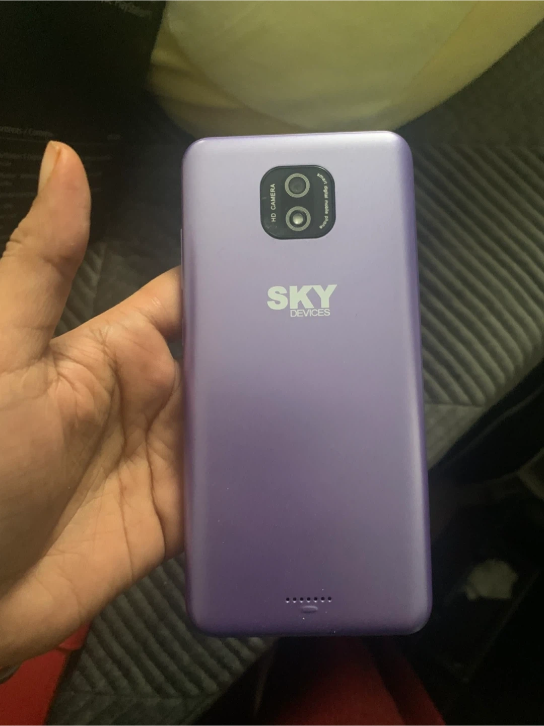 Sky Devices Elite P55Max smartphone in purple. This device features an HD camera on the rear. It's a dual SIM phone. Perfect for everyday use!