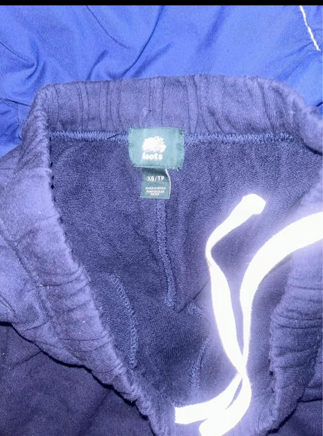 Roots navy blue athletic shorts with a drawstring waist. It's a size XS/TP. These are comfy shorts for everyday wear.