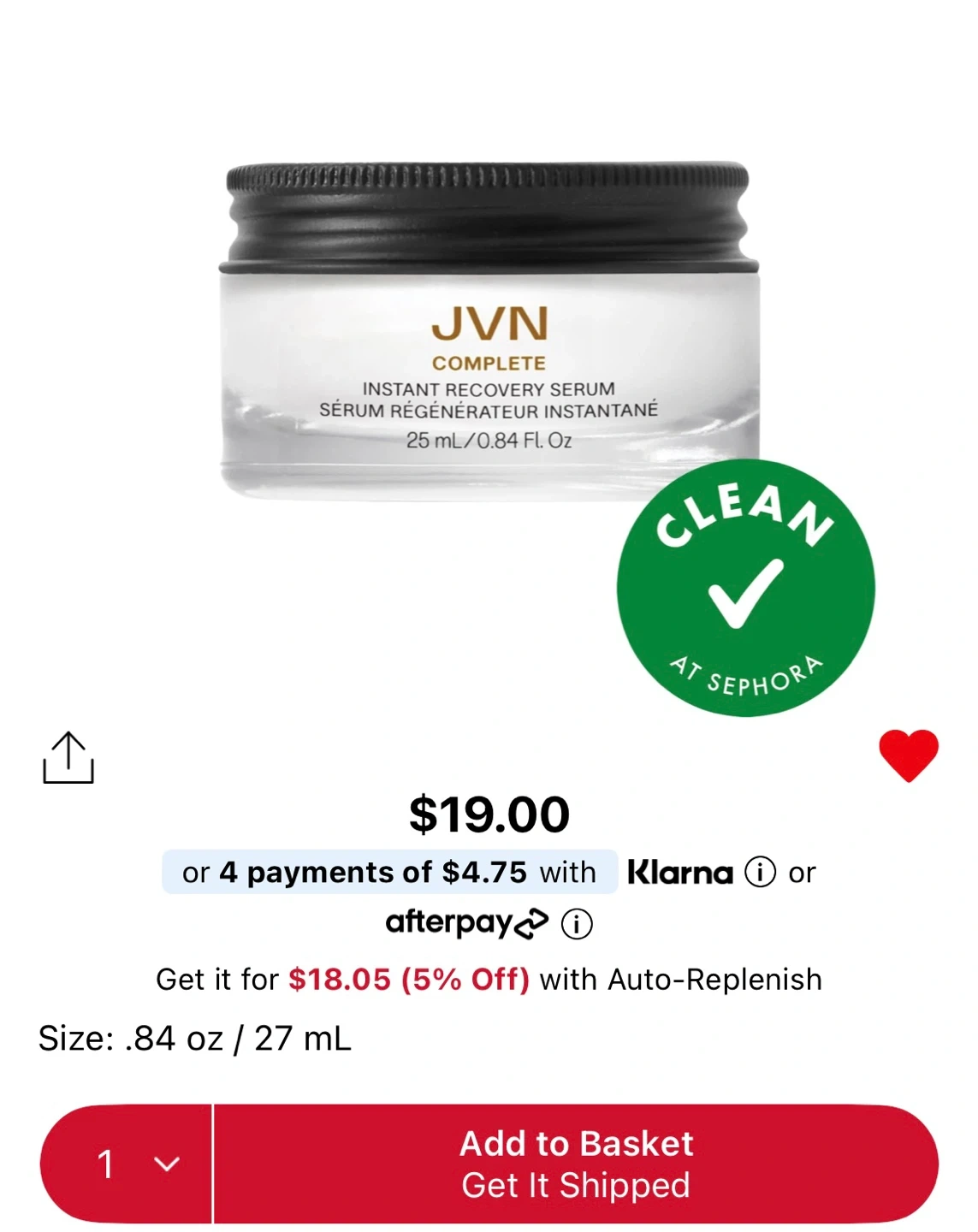 Buy & SellNew JVN Complete Instant Recovery Serum 30mlNew JVN Complete Instant Recovery Serum 30ml$10Brand new in box JVN Complete Instant Recovery Serum. Travel size 30 ml Pickup in Richmond, cash only.ConditionNewBrandJVNWHERE TO MEETCF Richmond CentreView MapSELLERverifiedAsiaCity Centre1000+77 reviews0 chats·0 favorites·3 viewsSEND CHAT TO SELLERHi Asia! I’m interested in your listing.Hi Asia! I’m interested in your listing.Get the Karrot app to chatSign In to chat