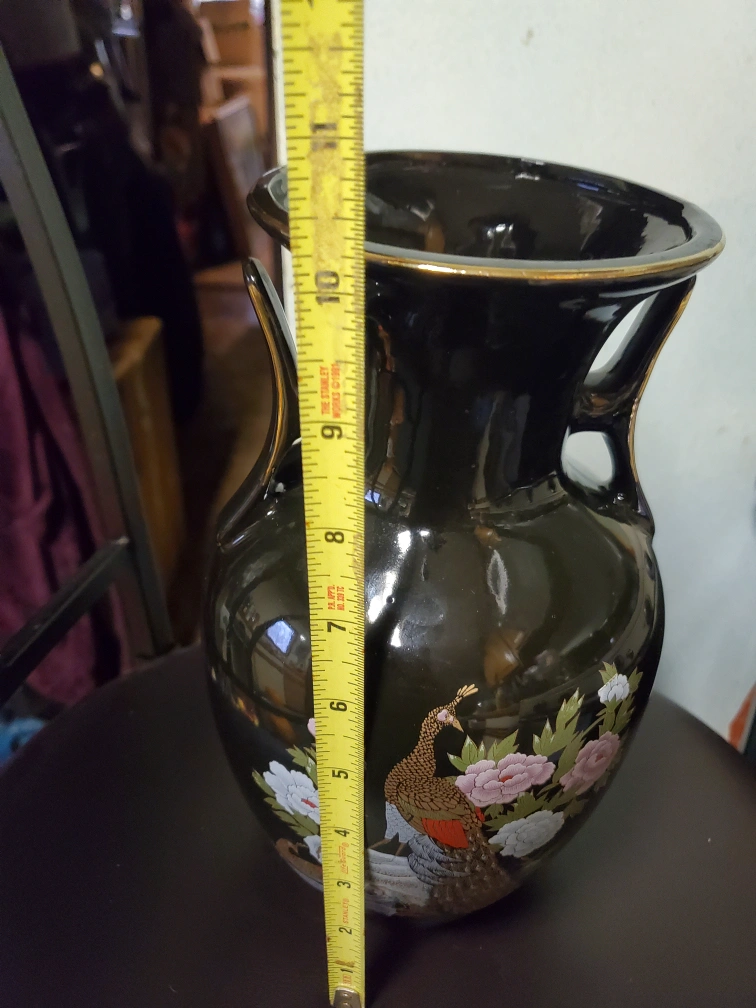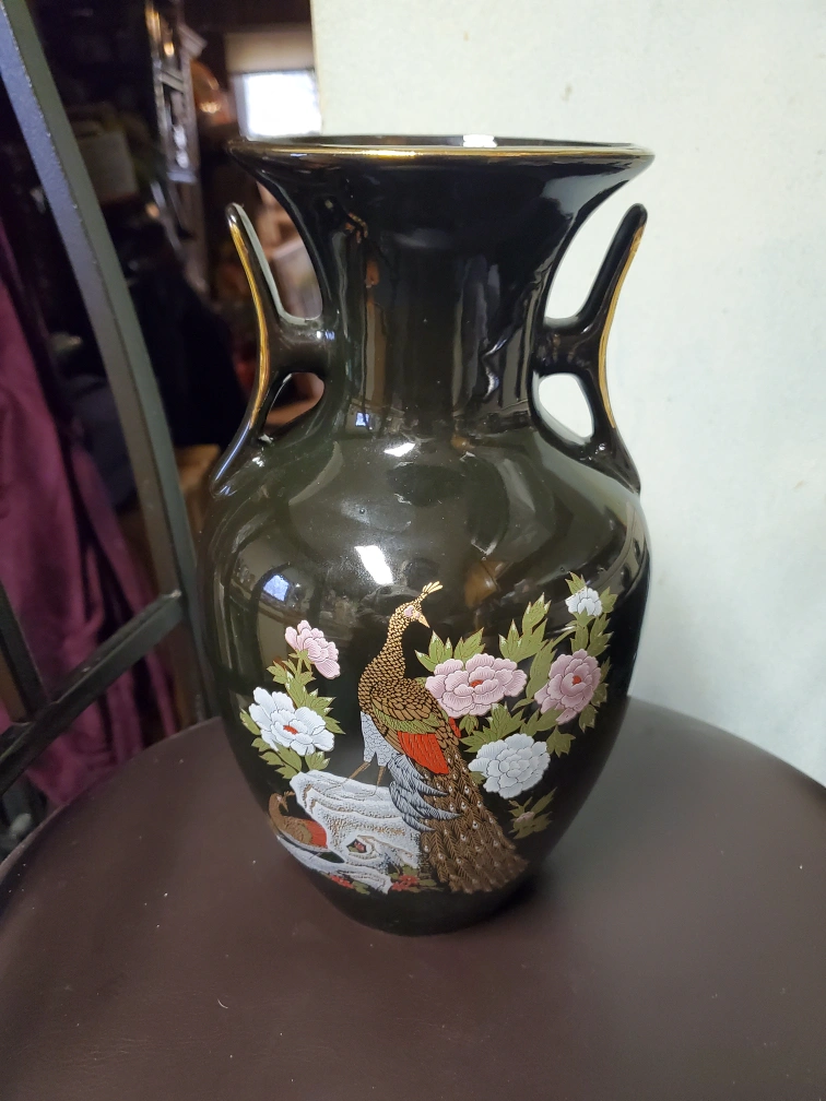Selling a beautiful vintage vase featuring a peacock design. It's about 10 inches tall and would make a lovely addition to any home!