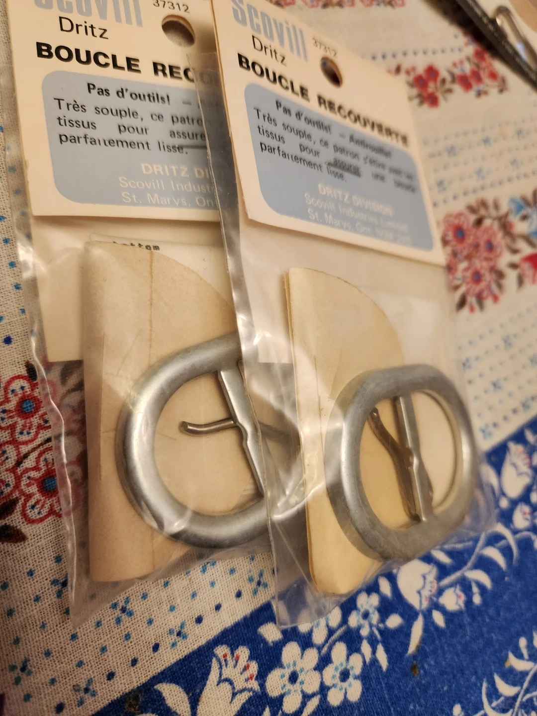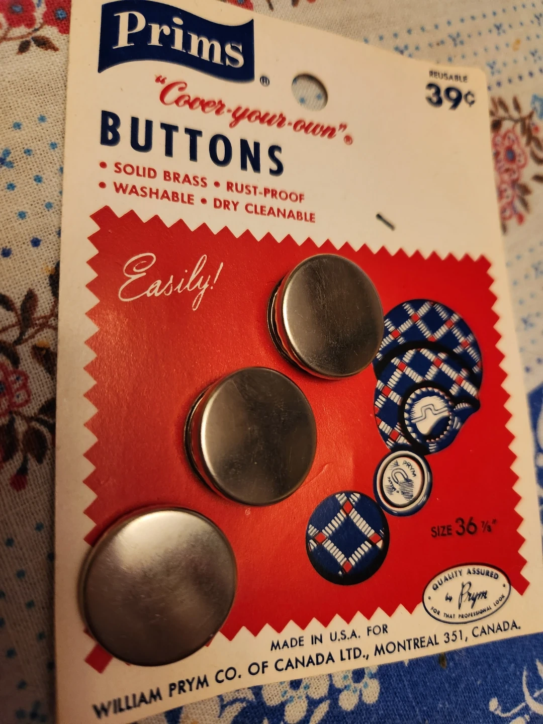 A bundle of sewing notions including Prym 'cover-your-own' buttons, size 36. Also includes Dritz coverable buckles and a Tailorform cover your own buckle kit.