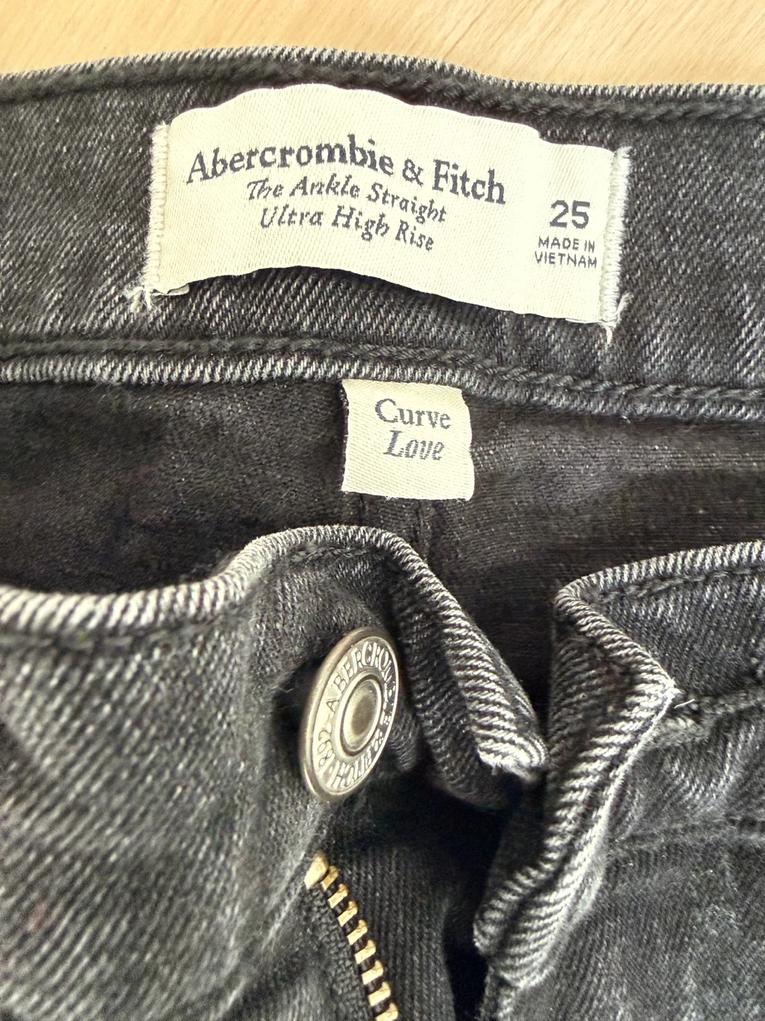 Abercrombie & Fitch Curve Love jeans in a dark wash. They're an ankle straight cut with an ultra high rise. Made in Vietnam, size 25.
