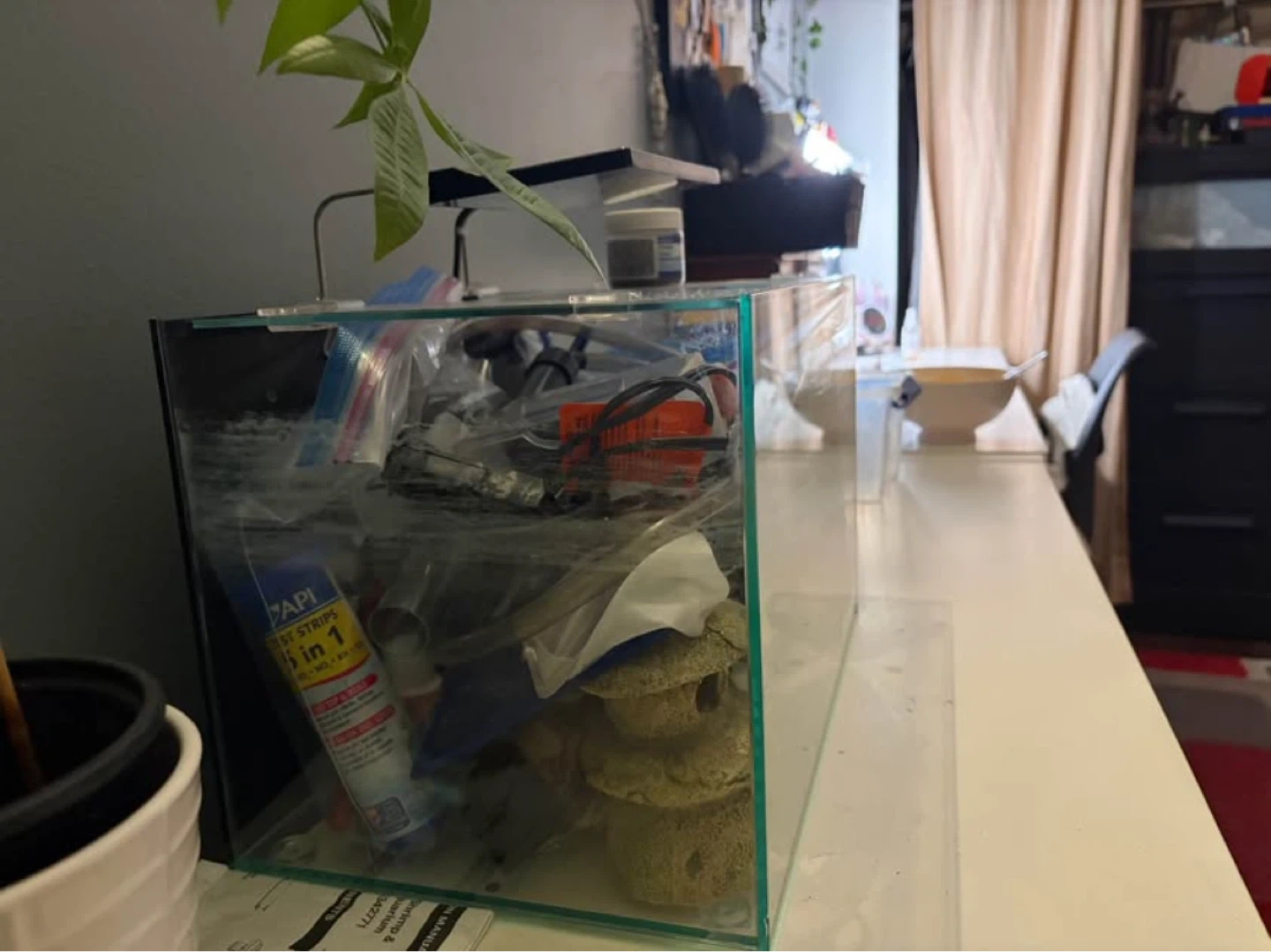 Selling a used fish tank that comes with a variety of accessories, making it a great starter setup for anyone looking to get into the aquarium hobby or upgrade their current tank.
