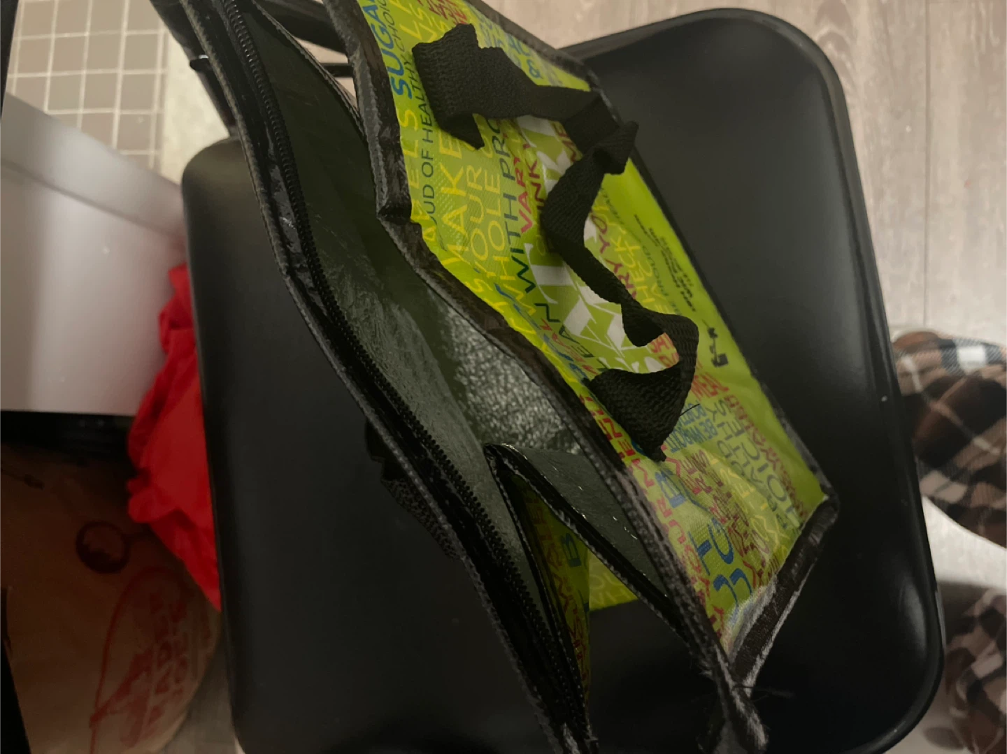 Black Storage Bin with Yellow Lid