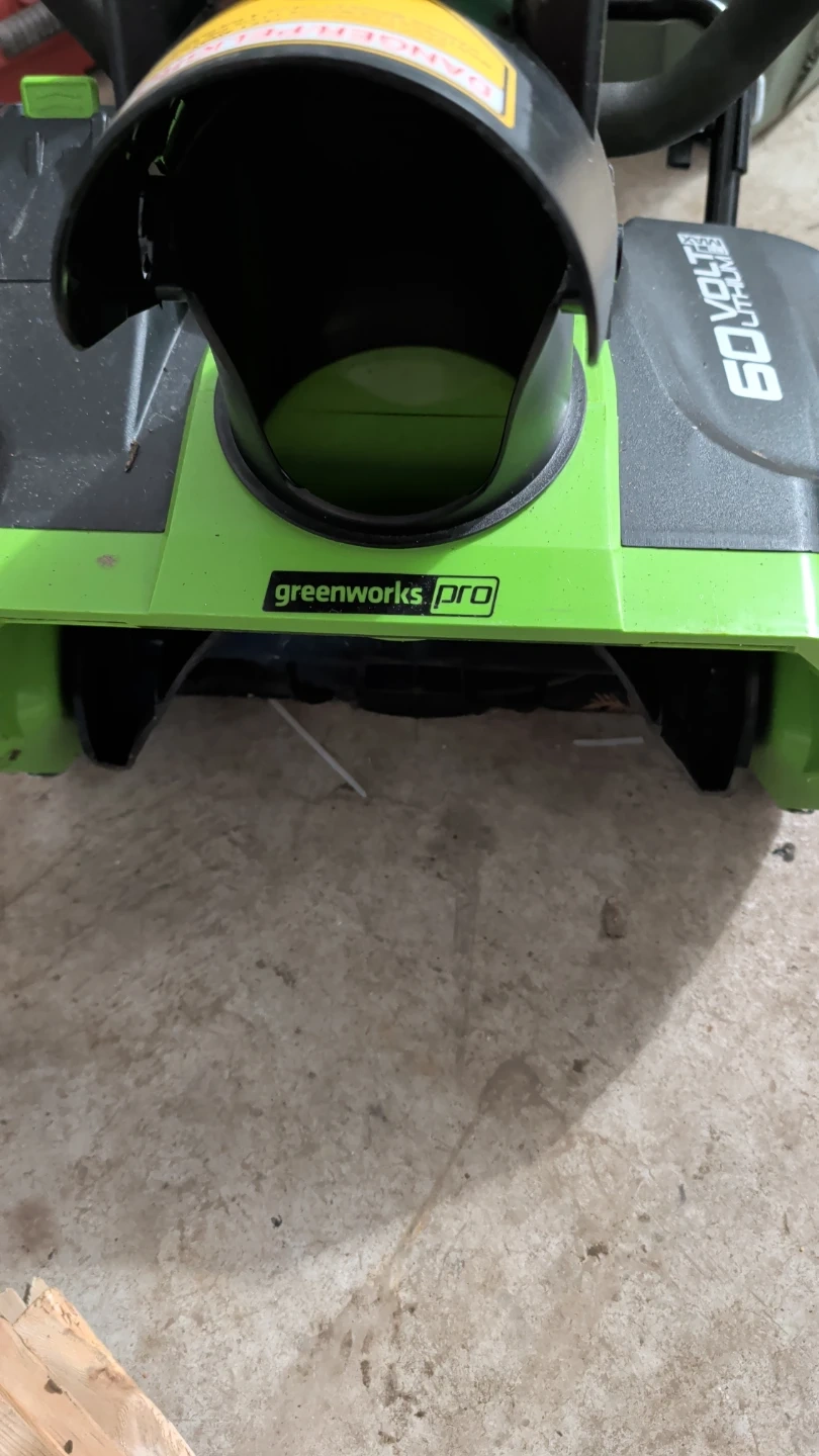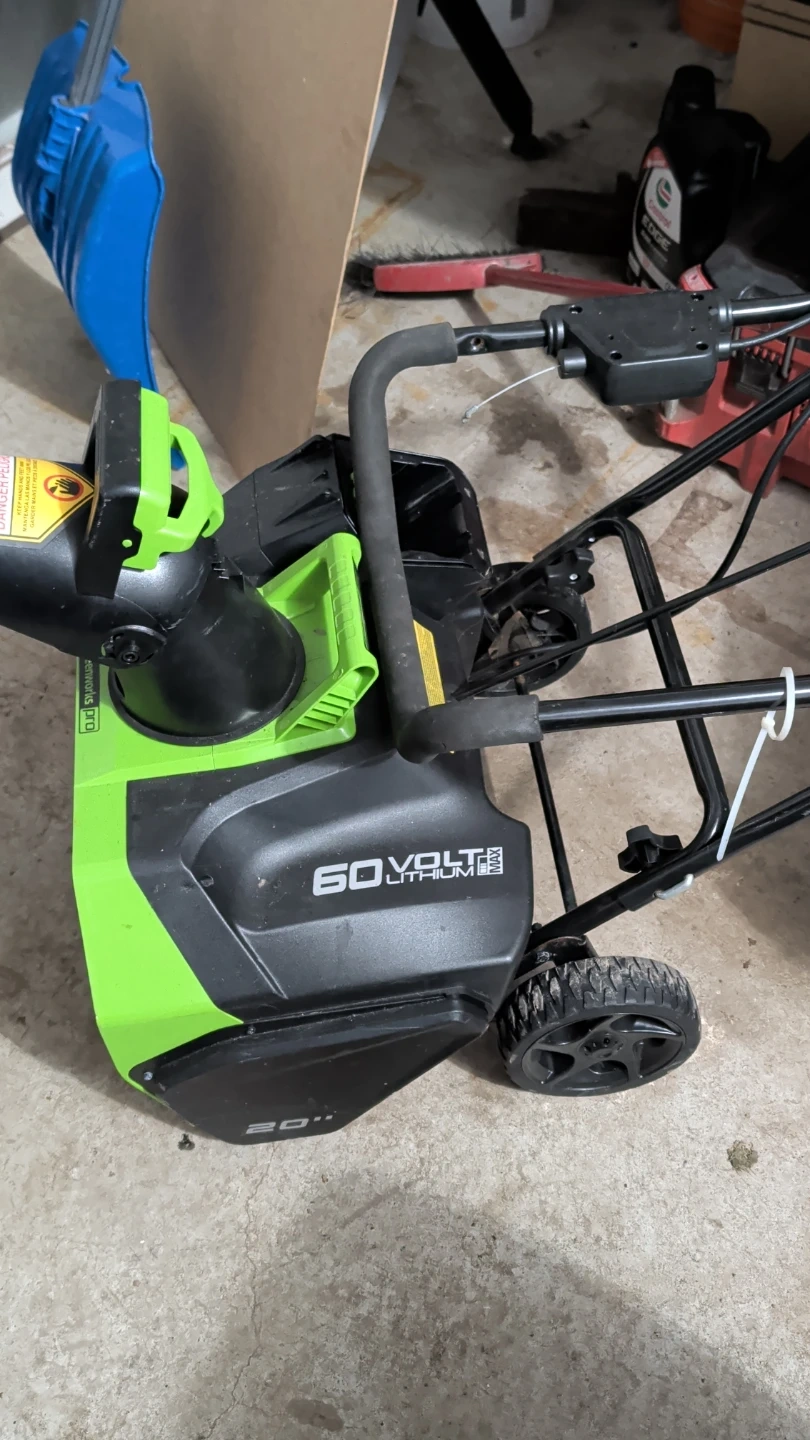 This is a Greenworks PRO 60V Lithium snowblower. It features a 20" clearing width. This snowblower is great for clearing driveways and walkways. Condition unknown do not have battery or charger. Lost cover for battery housing and metal handlebar piece.