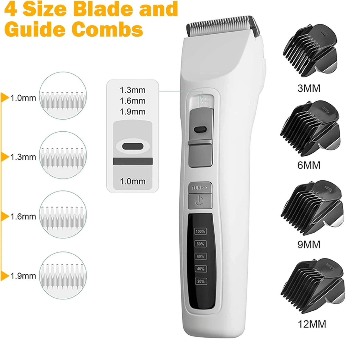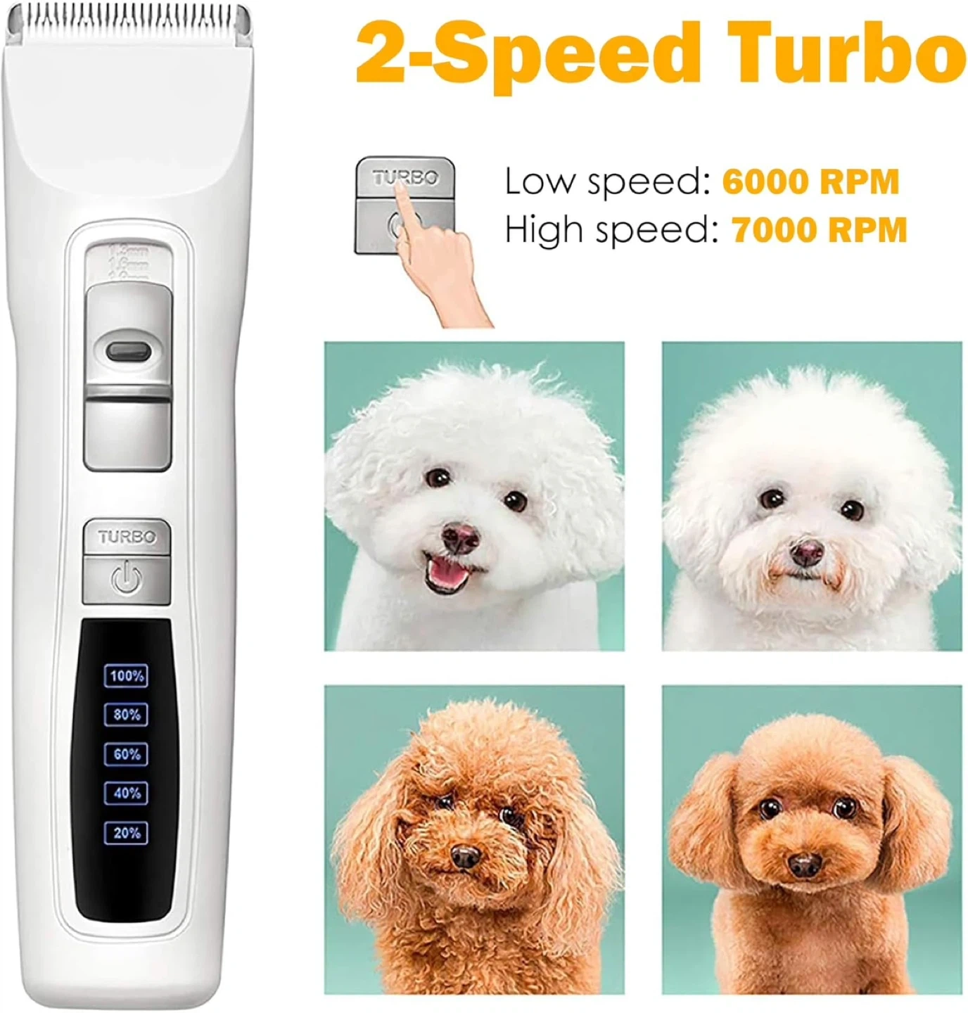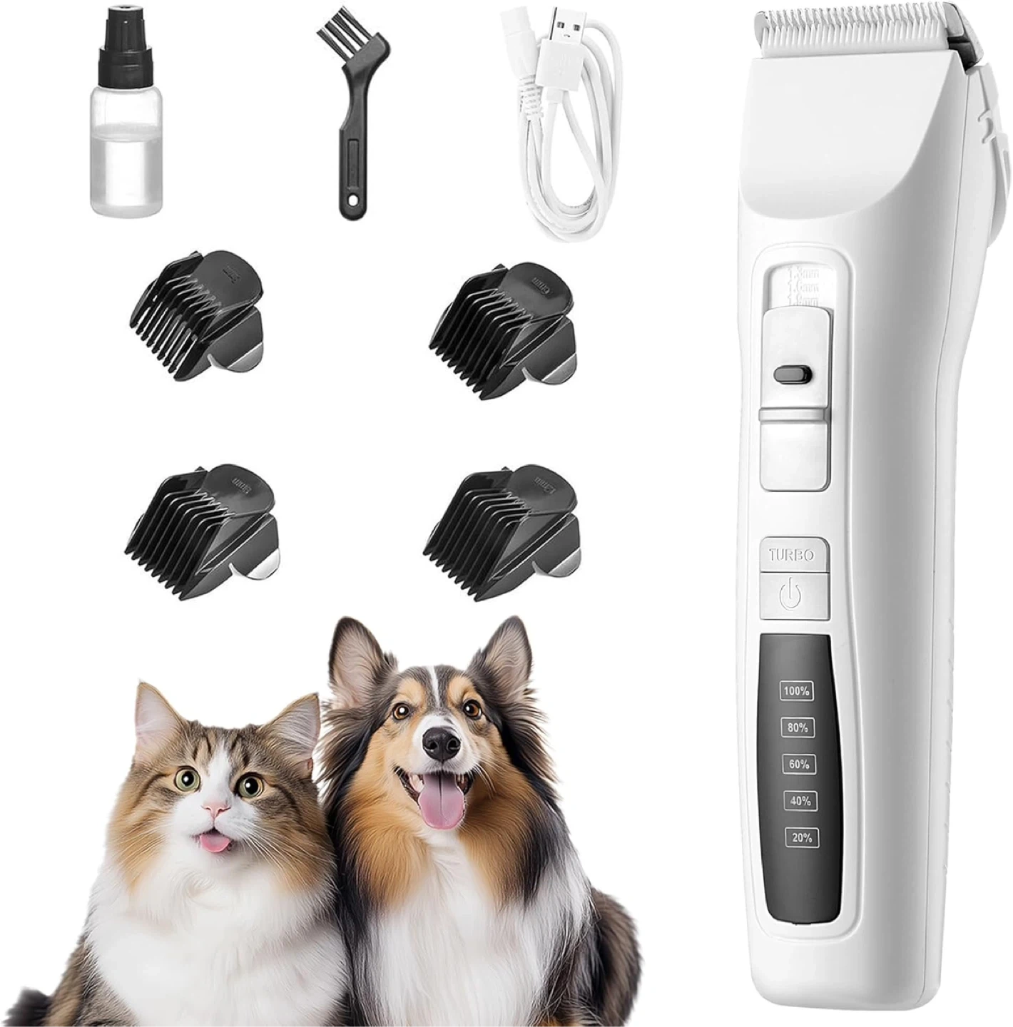 Brand new pet grooming clippers with ceramic blade, USB charging, and ultra-quiet operation. Includes turbo mode, adjustable settings, and multiple comb attachments for different coat lengths. Suitable for dogs and cats. Easy to use at home.