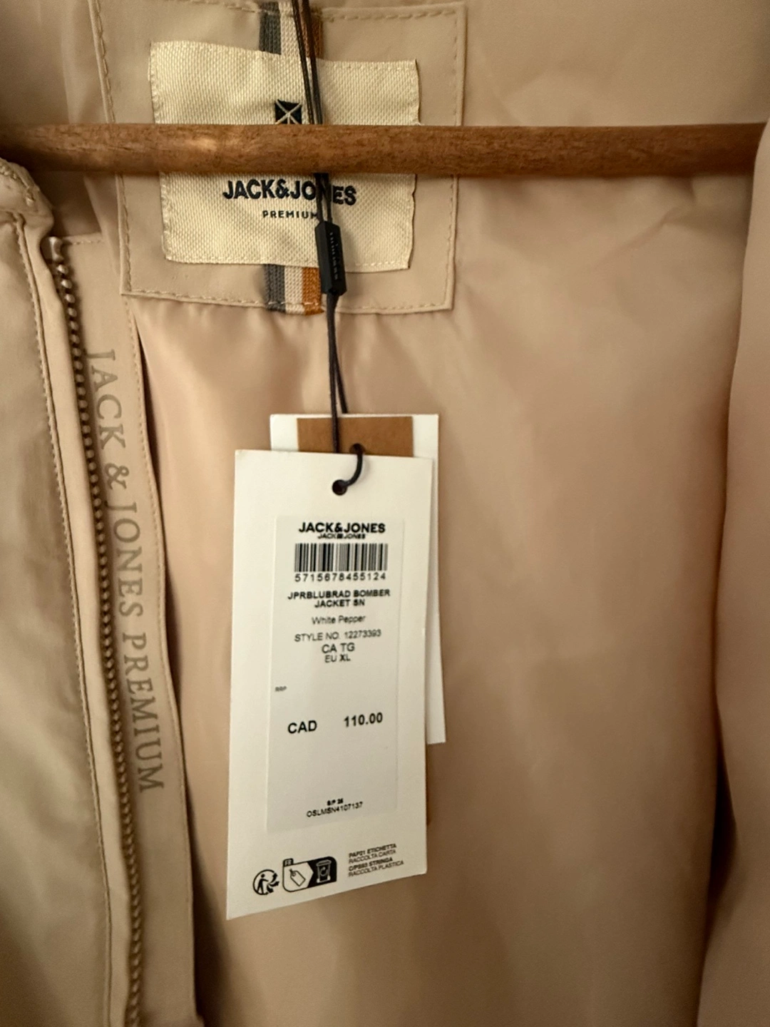 Selling a Jack & Jones Premium bomber jacket in size XL. It's a very stylish and comfortable jacket. The colour is White Pepper. Originally bought for $110 CAD