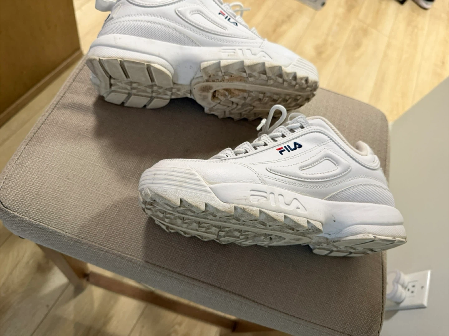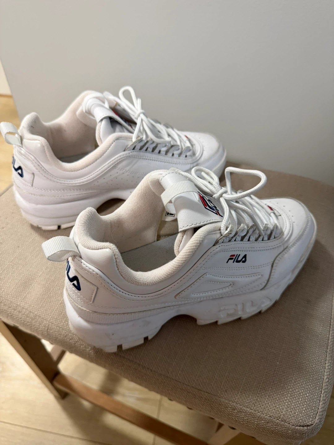 White Fila Disruptor Sneakers - Size 8.5 US