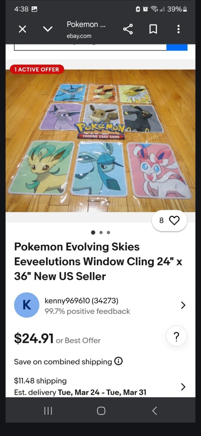 This is a Pokemon Trading Card Game window stickers featuring Eevee and its evolutions. It's great for decorating your windows The window sticker displays Eevee, Vaporeon, Jolteon, Flareon, Umbreon, Espeon, Leafeon, and Sylveon.