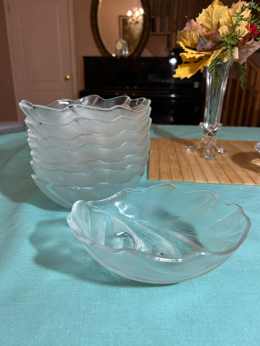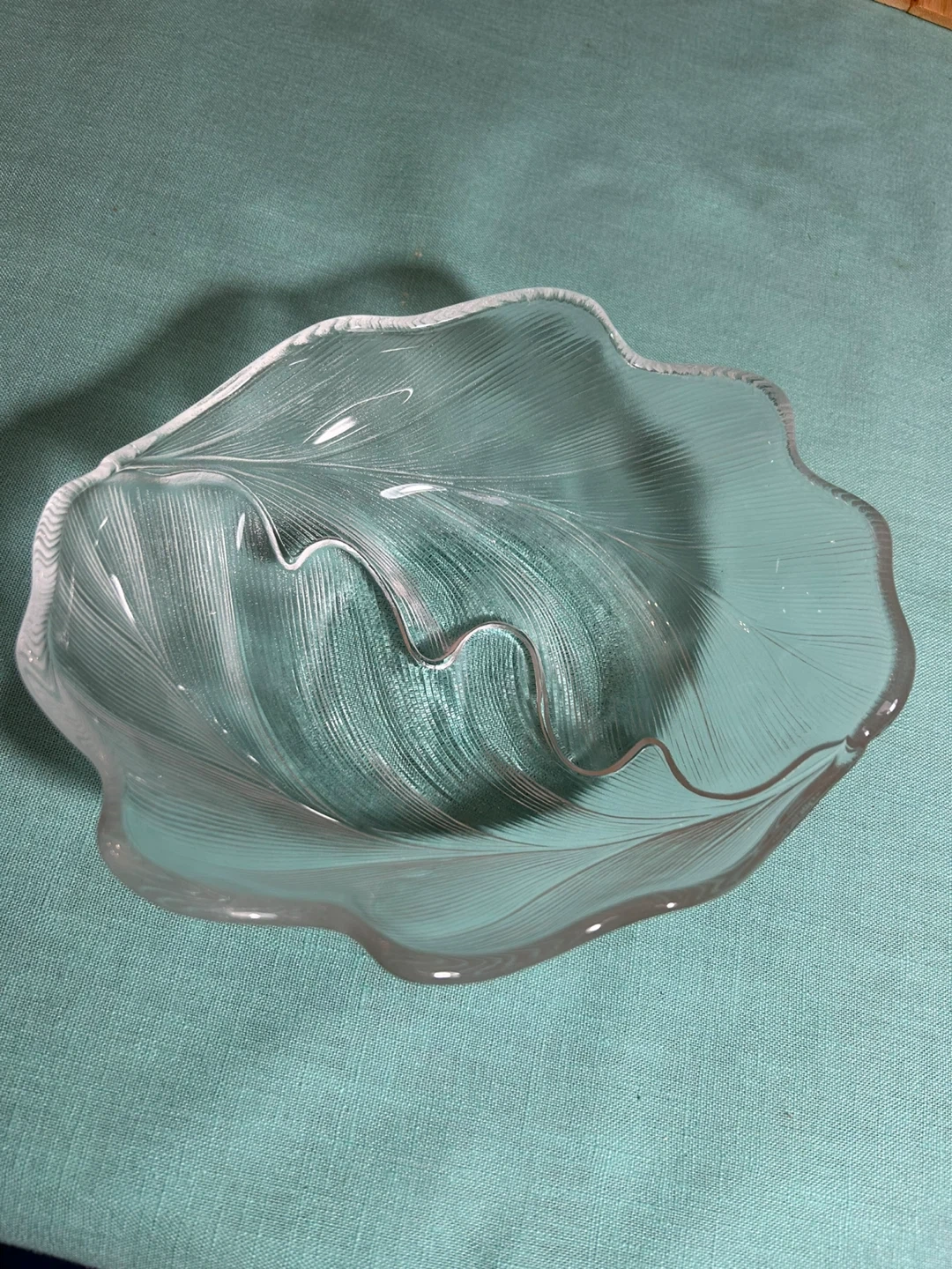 Selling a set of 8 clear glass bowls shaped like leaves! They're in great condition and perfect for serving snacks or desserts. The unique leaf design adds a touch of elegance to any table setting