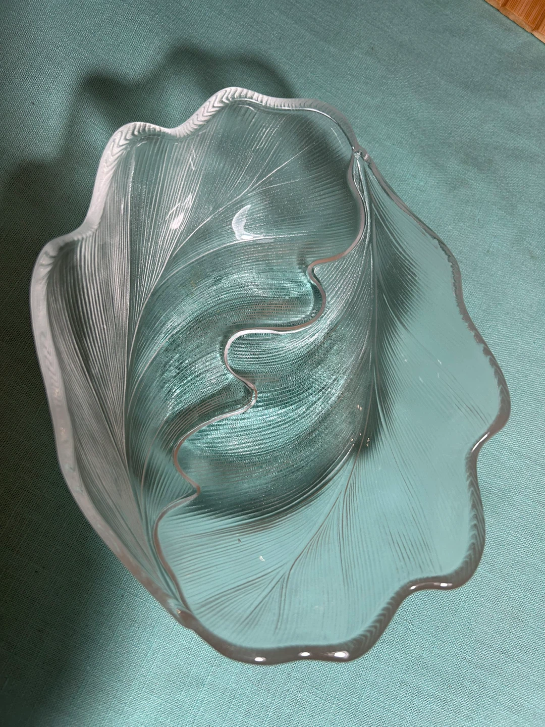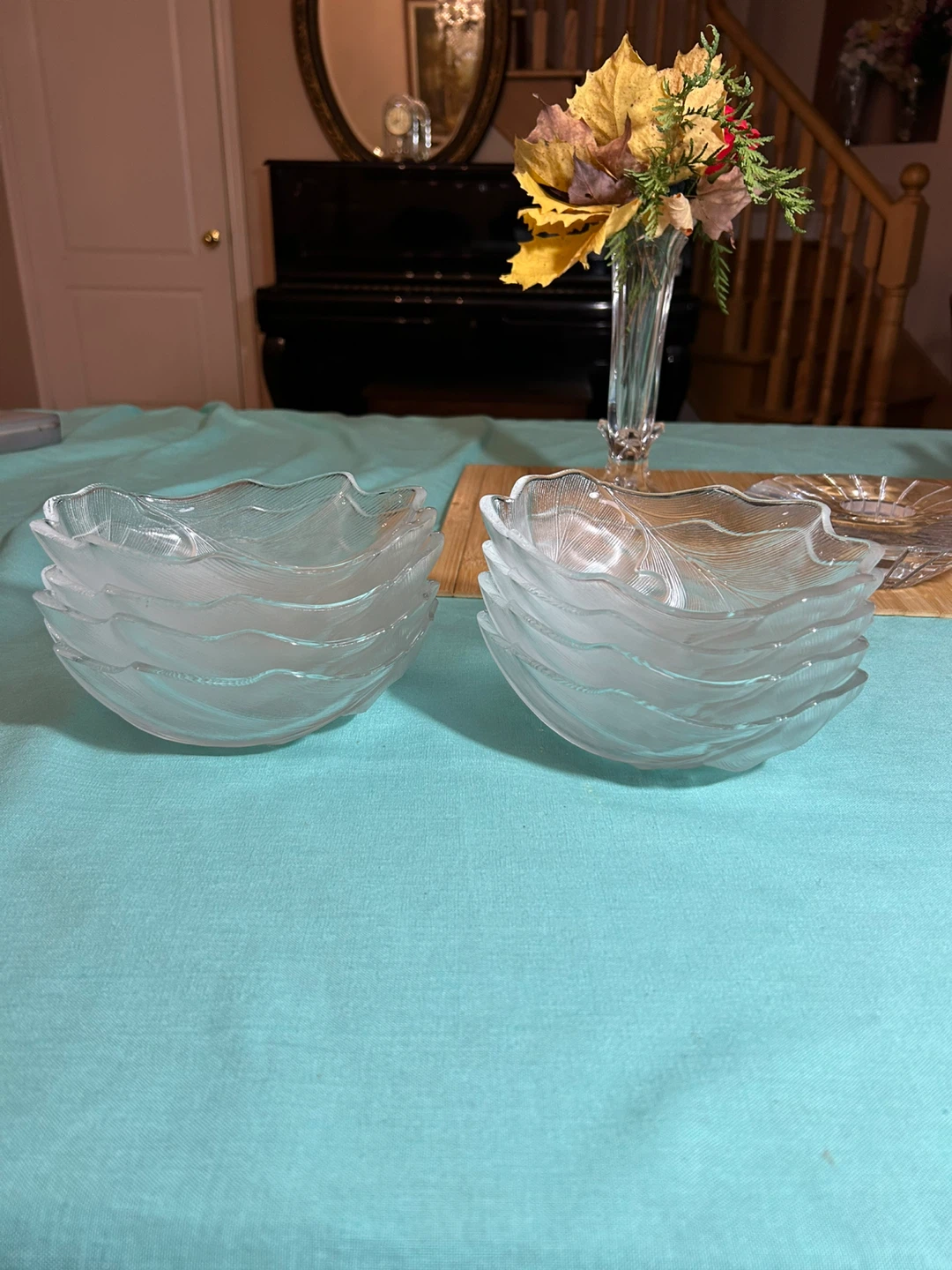Selling a set of 8 clear glass bowls shaped like leaves! They're in great condition and perfect for serving snacks or desserts. The unique leaf design adds a touch of elegance to any table setting