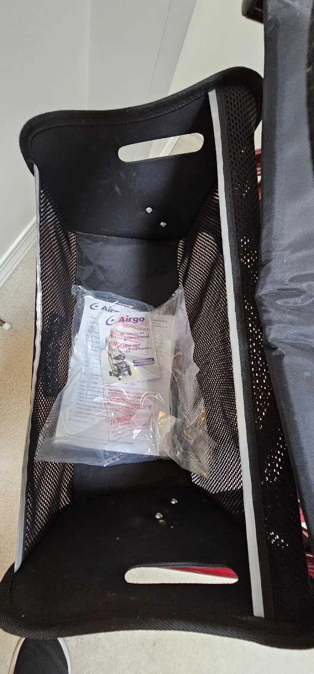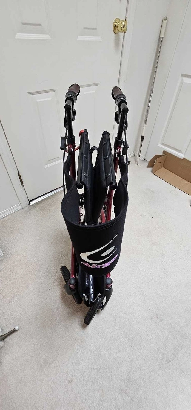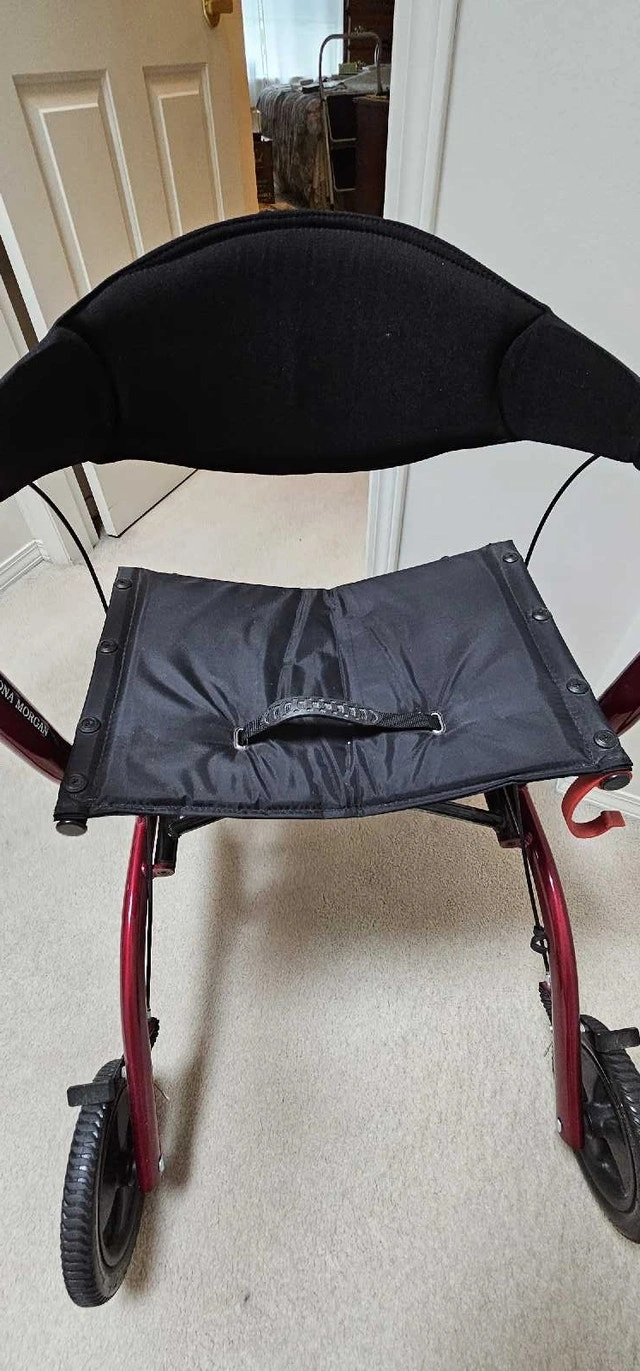 Solid walker that is also a Mobility seat. Adjustable arm heights, 300 lb capacity, foldable and light. Good condition, little used. Was over $400 new