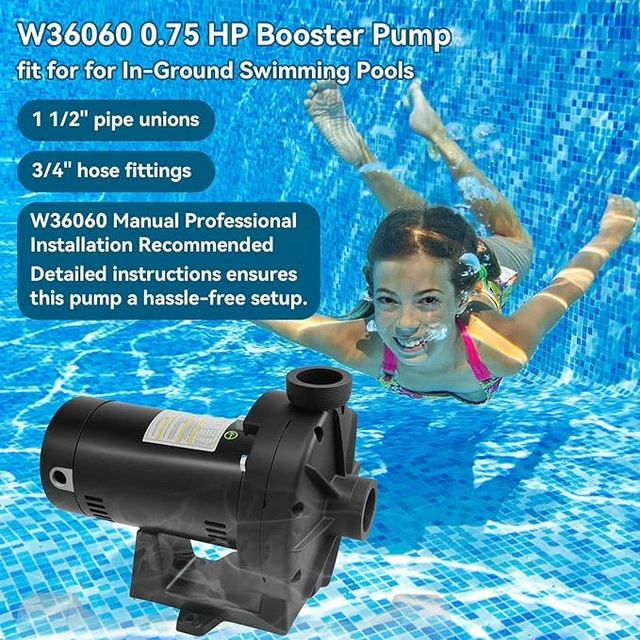 Powerful and efficient booster pump to enhance your pool’s cleaning performance. Works with Hayward setups and other pressure side pool cleaners. 0.75 HP motor – quiet operation. Energy saving design. Compatible with Hayward systems. Includes 1.5” unions & 3/4” hose fittings. Open box – new, unused. PLEASE NOTE: Final sale – no returns, no warranty. Check and test on pickup. Available until sold.