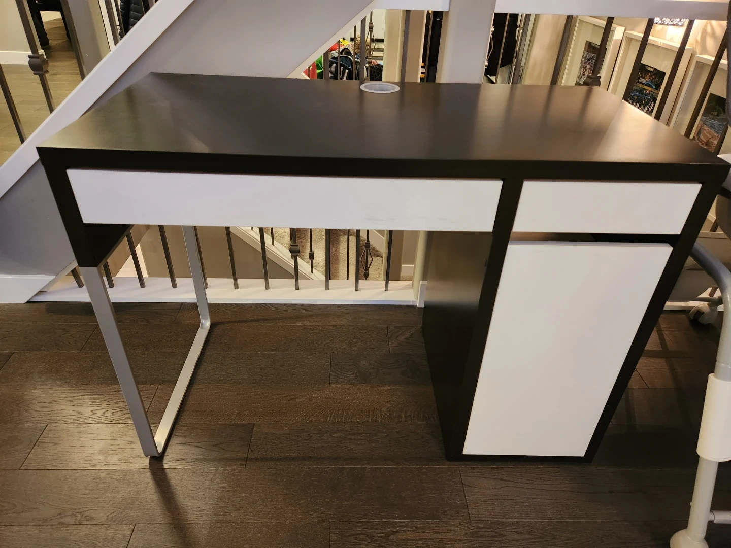 Buy & SellIkea Micke DeskIkea Micke Desk$29Used Ikea Micke Desk. Black with white drawer/cabinets. Cable management hole on the top of the desk. ConditionGoodWHERE TO MEETKeswick AreaView MapSELLERverifiedTanKeswick Area1014 reviews2 chats·1 favorites·34 viewsSEND CHAT TO SELLERHi Tan! I’m interested in your listing.Hi Tan! I’m interested in your listing.Get the Karrot app to chatSign In to chat
