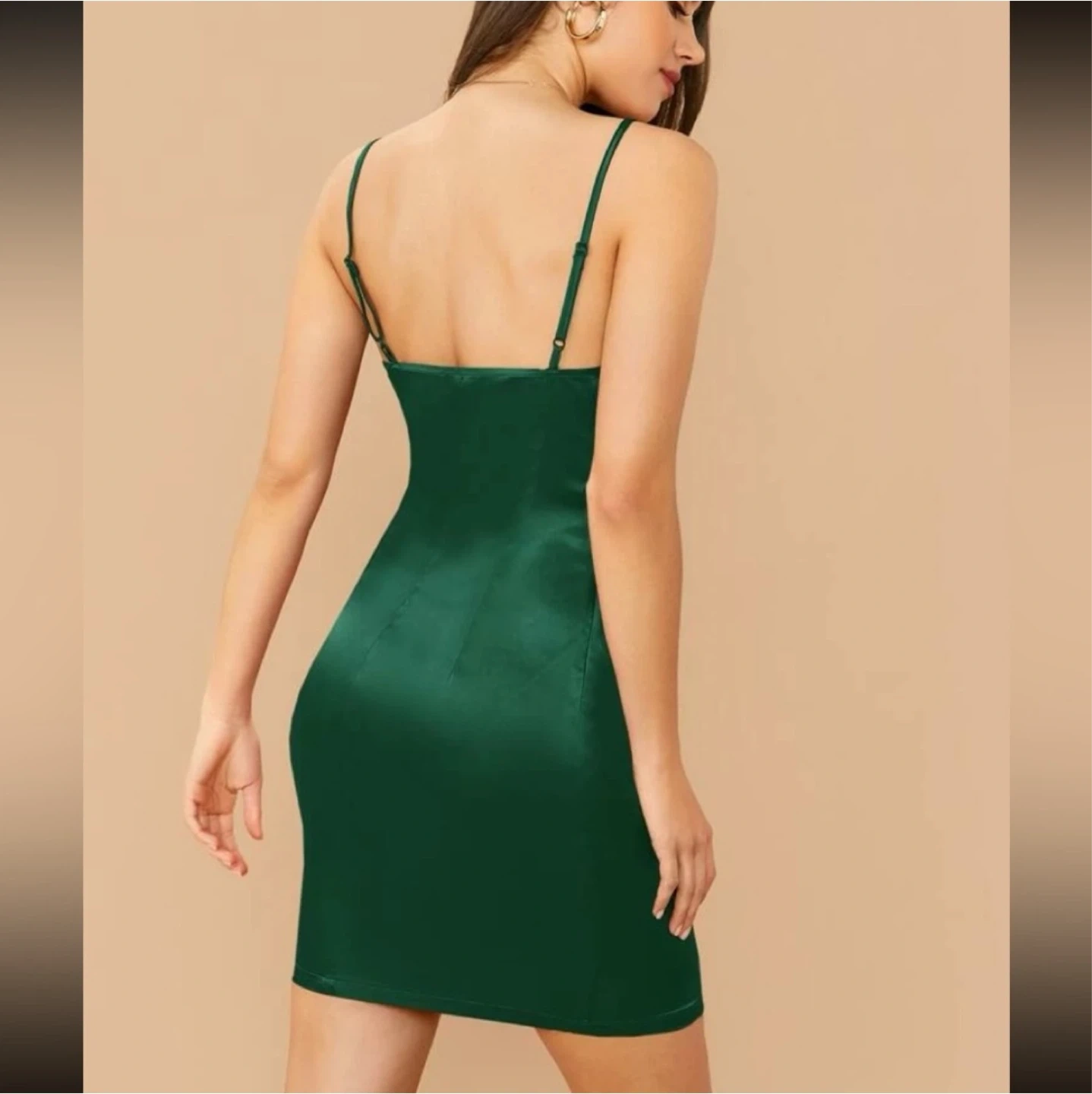 Cowl neck satin cami dress in beautiful forest green colour from Shein