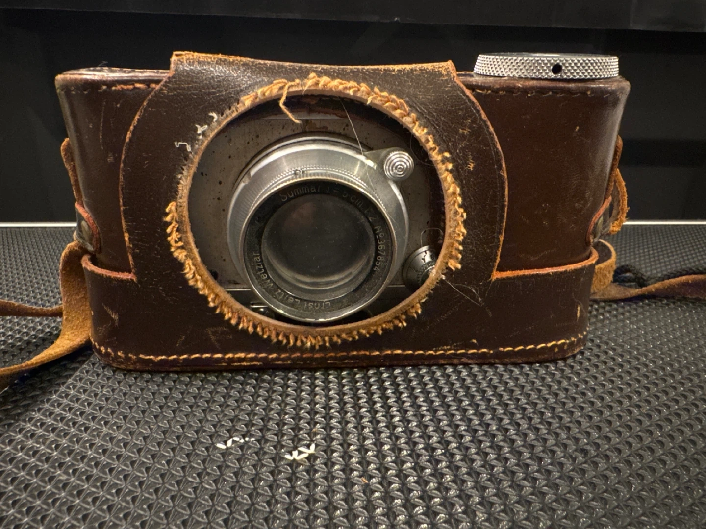 This lot includes a Sekonic light meter in its original case and a vintage camera fitted with a leather protective case. The camera lens is a "Summari 1:5cm 1:2."