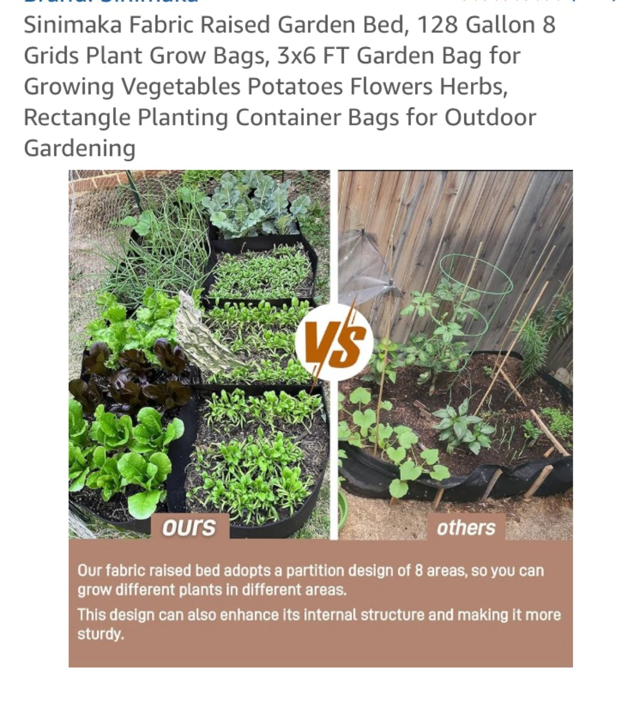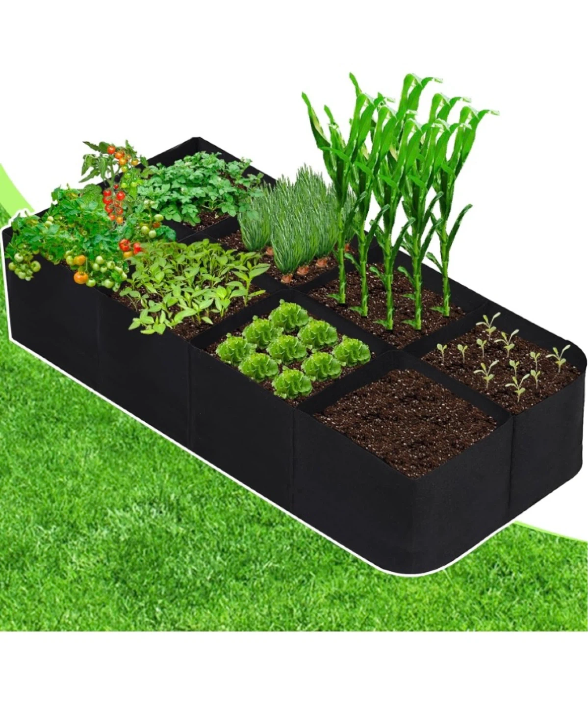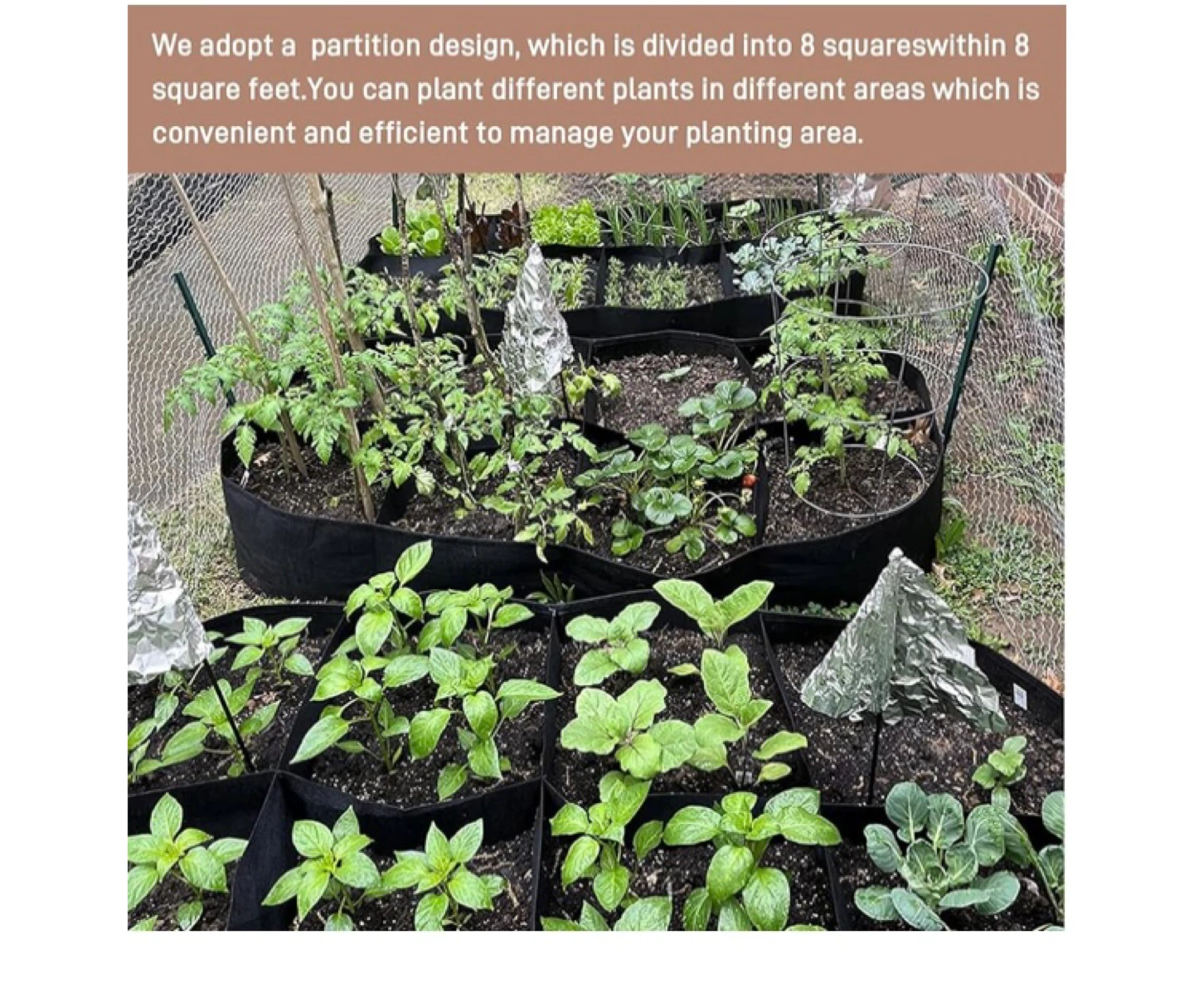 This fabric raised garden bed is 128 gallons and features 8 grids for planting different plants. Its durable fabric construction promotes healthy root growth. It's perfect for growing vegetables, potatoes, flowers, and herbs outdoors!