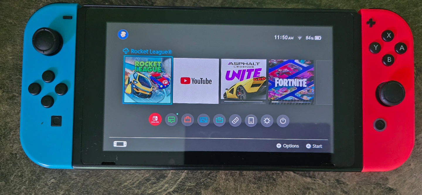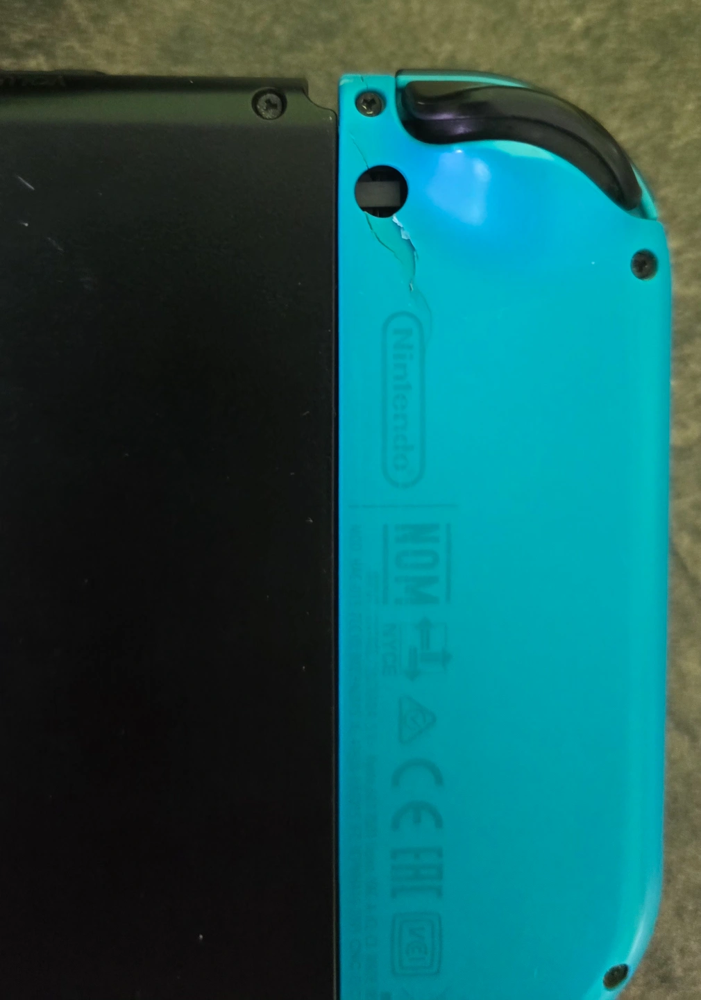 The blue circle on the red joycon is not fully functional. It works when moving it but pressing on it like a button does not work, everything else fully functional.