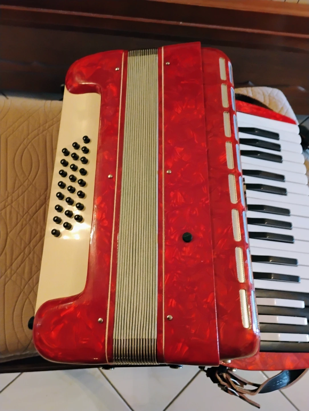 For sale perfect condition Vintage accordion ! Korean brand 1970! In great condition and all original case and straps ! Ready to play ! $299.00! Please contact me thank you ๐! And other accordions available! 24 bass 33 keys ! 3/4 size! With case !