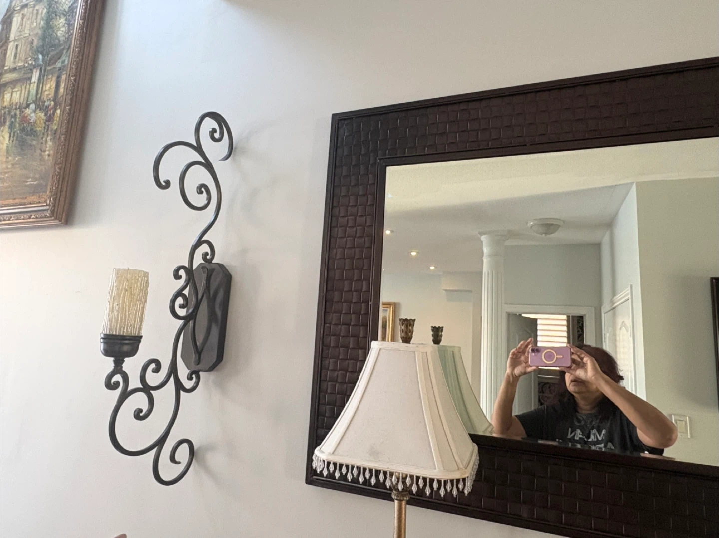 Mirror and wall sconce