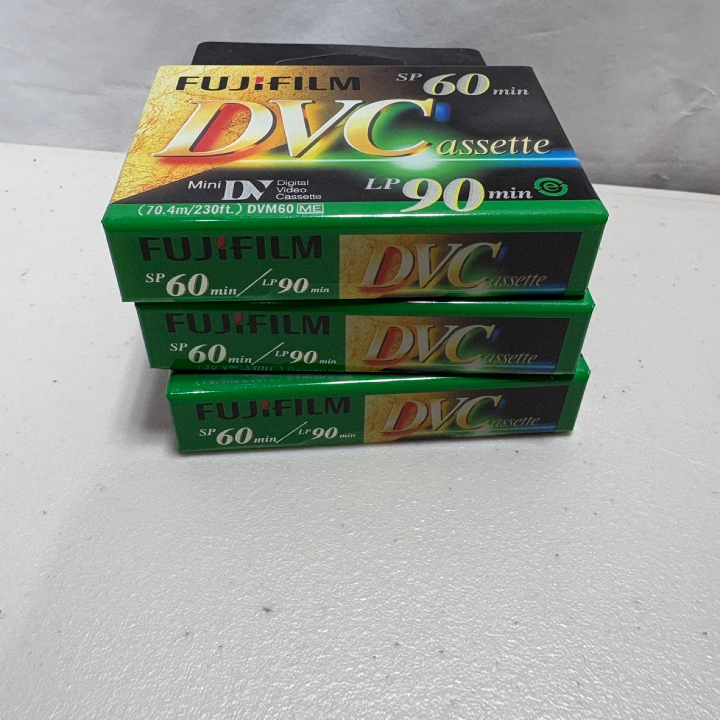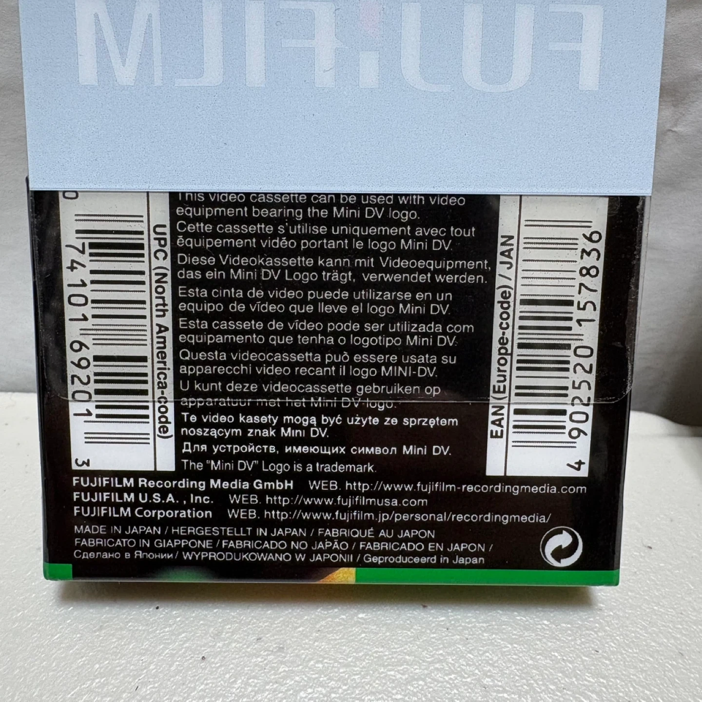 This Fujifilm DVC cassette is designed for Mini DV video equipment. It offers 60 minutes of recording time in SP mode and 90 minutes in LP mode. Made in Japan.