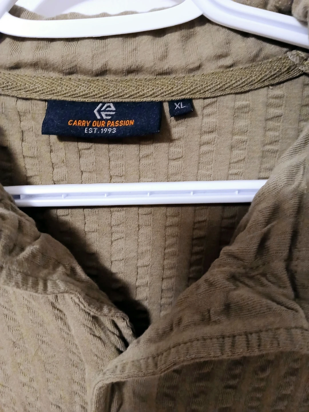 This men's short sleeve button-up shirt with a unique textured pattern. 100% cotton. Size XL. Available for pick up in Meadowvale area, closest intersection Brittania and Glen Erin