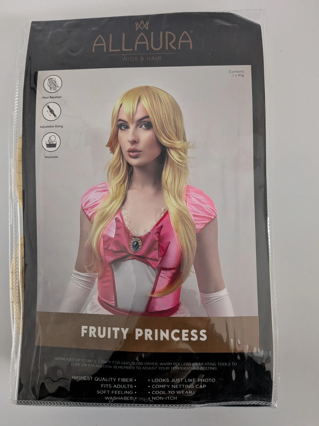 Get ready to transform into royalty with this new ALLAURA Fruity Princess wig, perfect for cosplay or Halloween! The long wavy blonde synthetic hair captures the essence of a fairytale princess, making it ideal for parties or fun photoshoots.
