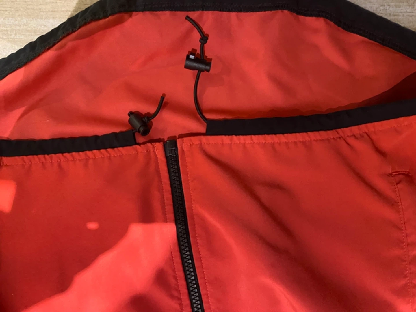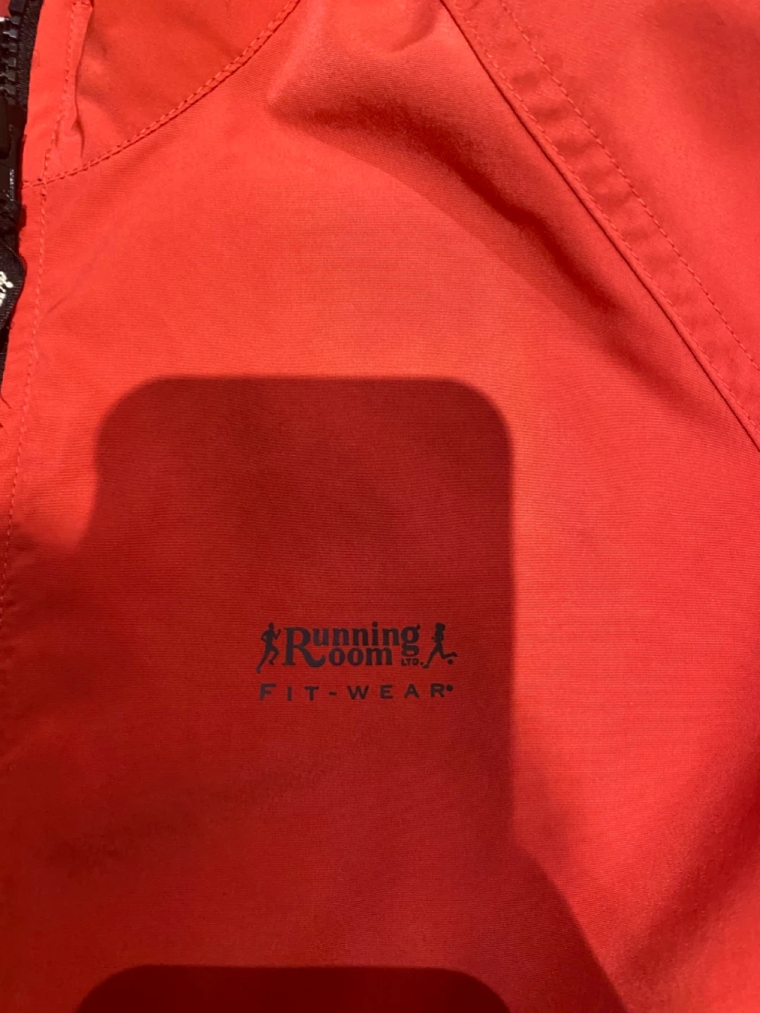 Selling a Running Room Fit-Wear jacket in great condition! It's a vibrant red colour with reflective stripes, perfect for visibility during runs. It has a zipper and drawstring, and longer back. Size is unisex xs.