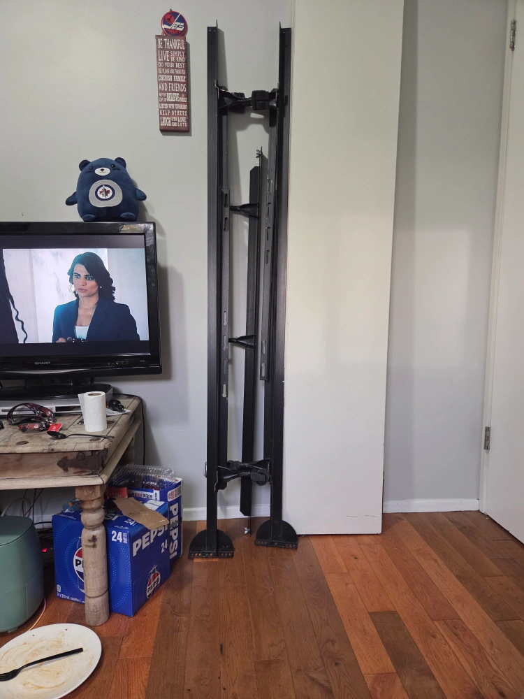Selling a black metal bed frame. It's in good condition and ready for a new home. Sturdy and reliable! Will fit double or queen