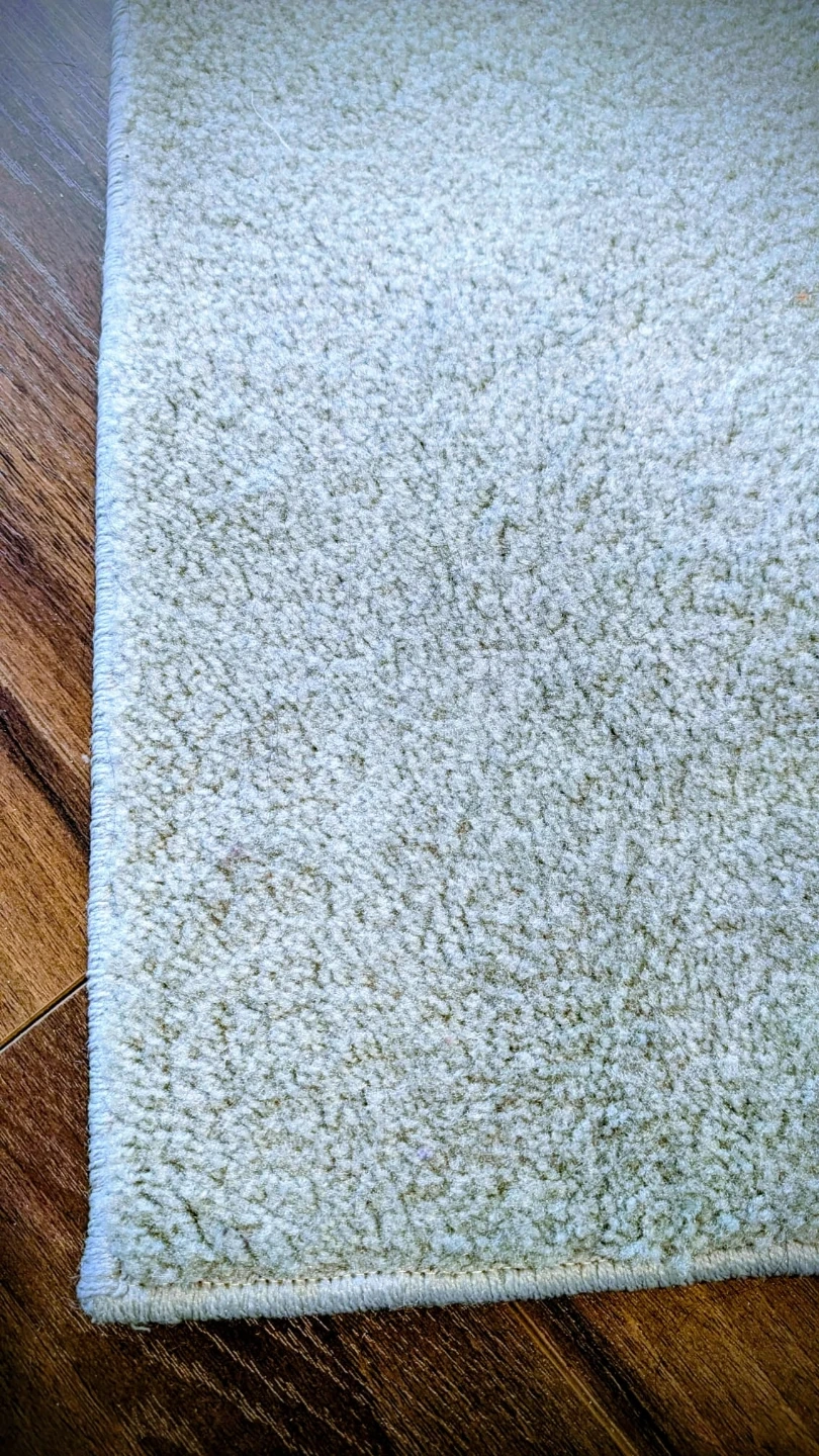 This is a light grey area rug. It's a shaggy plush style with a soft texture. It's a nice size for a living room or bedroom.