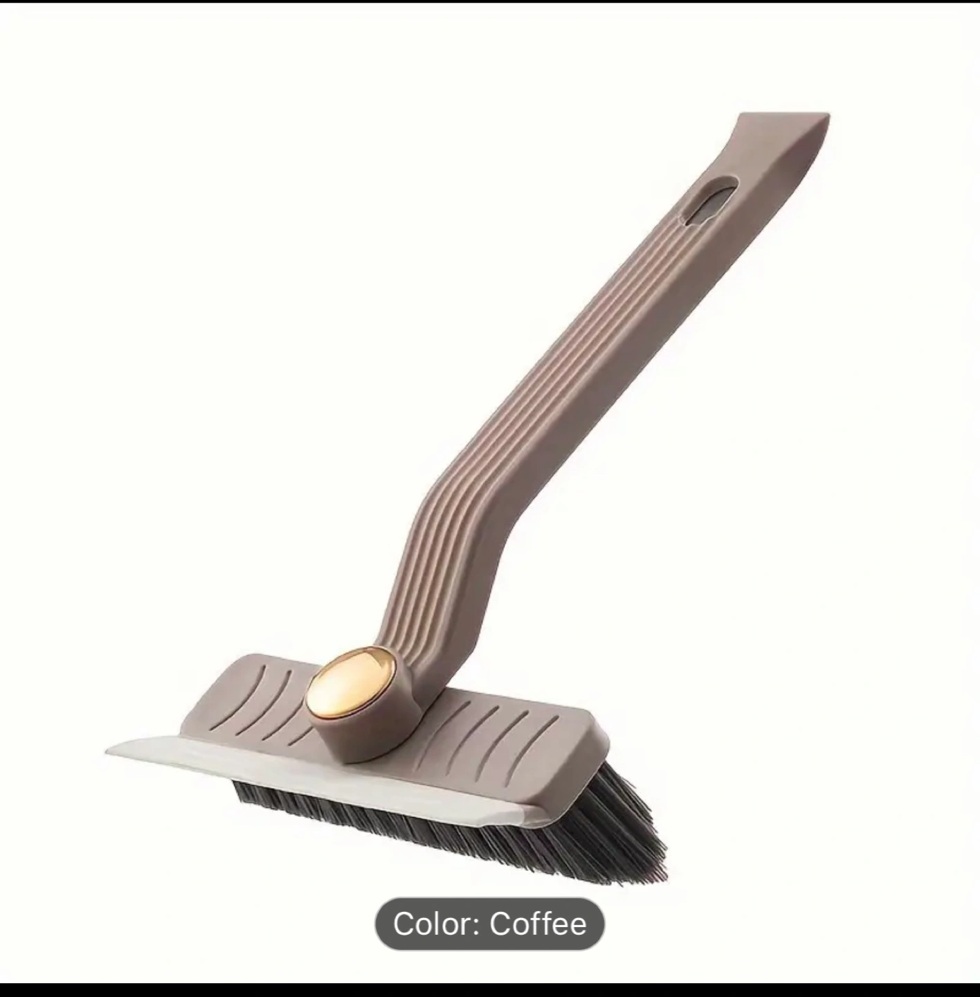 Window cleaning brush with squeegee. Grey with gold accents. Features a comfortable handle and a sturdy brush.