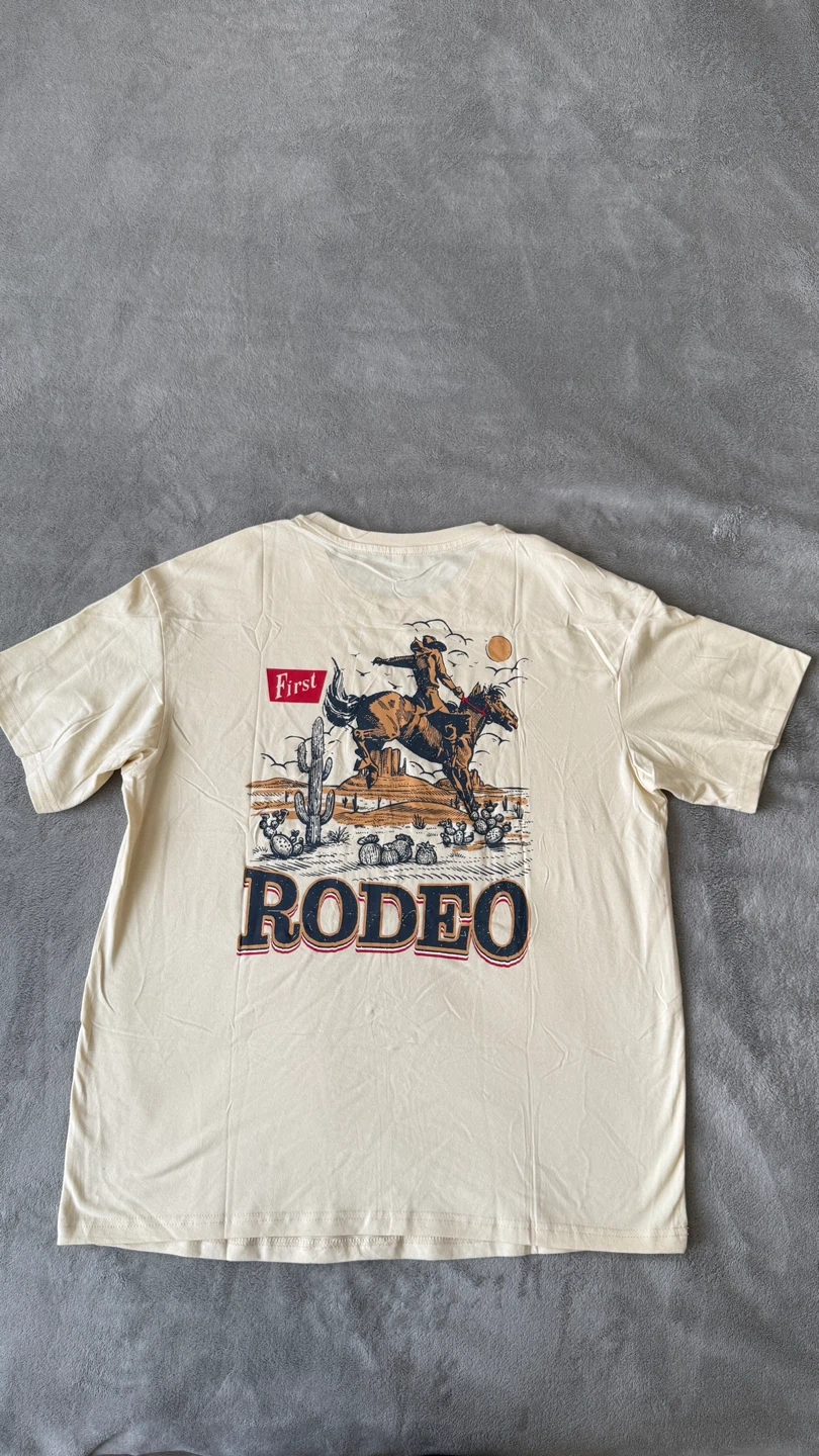 Buy & SellRodeo Graphic T-Shirt Size M OversizedRodeo Graphic T-Shirt Size M Oversized$10Size M, but it’s large , oversized 60% cotton 35% polyester 5% spandexConditionNewWHERE TO MEETCheck LocationView MapSELLERverifiedMarinaDowntown731 review0 chats·1 favorites·26 viewsSEND CHAT TO SELLERHi Marina! I’m interested in your listing.Hi Marina! I’m interested in your listing.Get the Karrot app to chatSign In to chat
