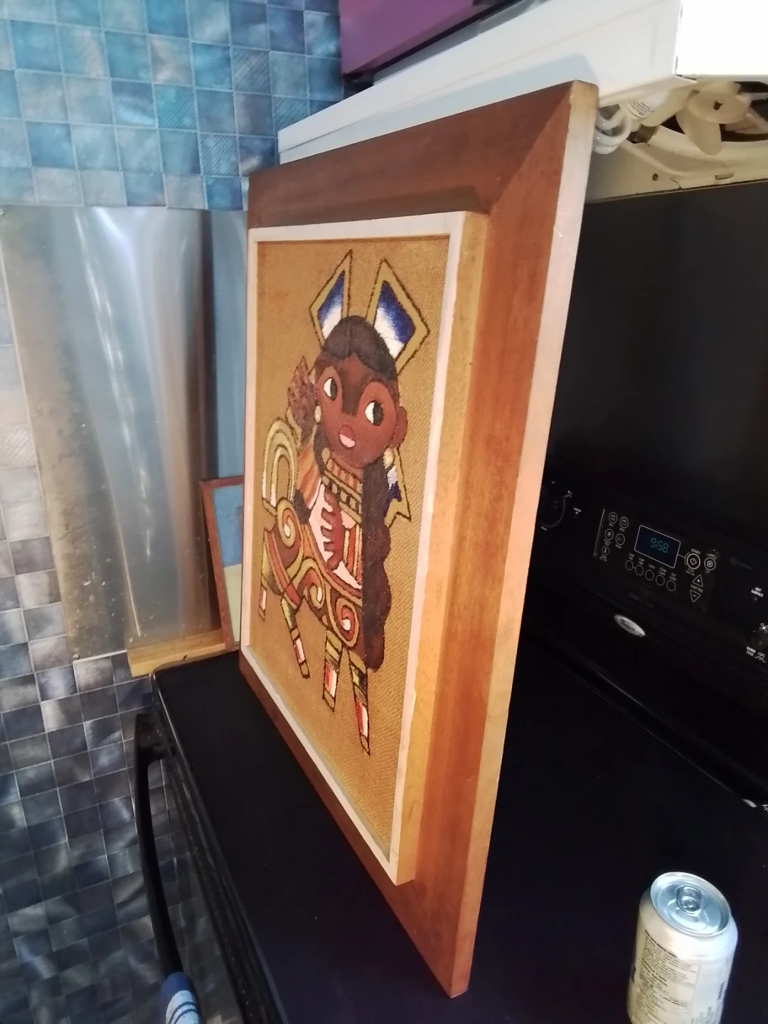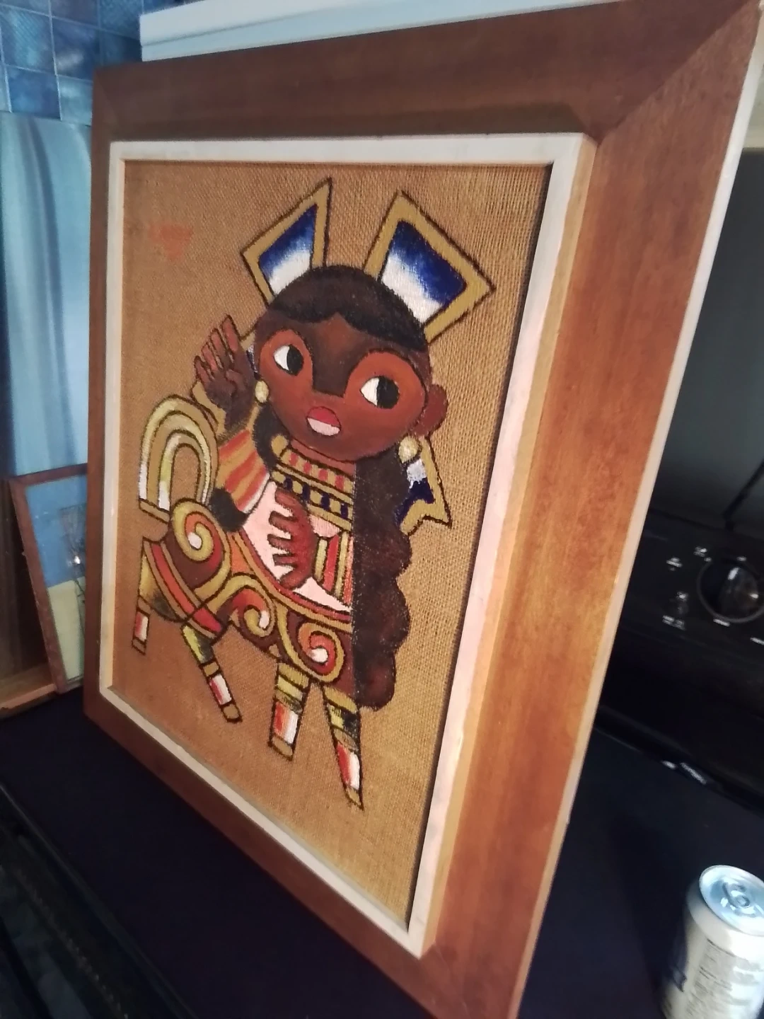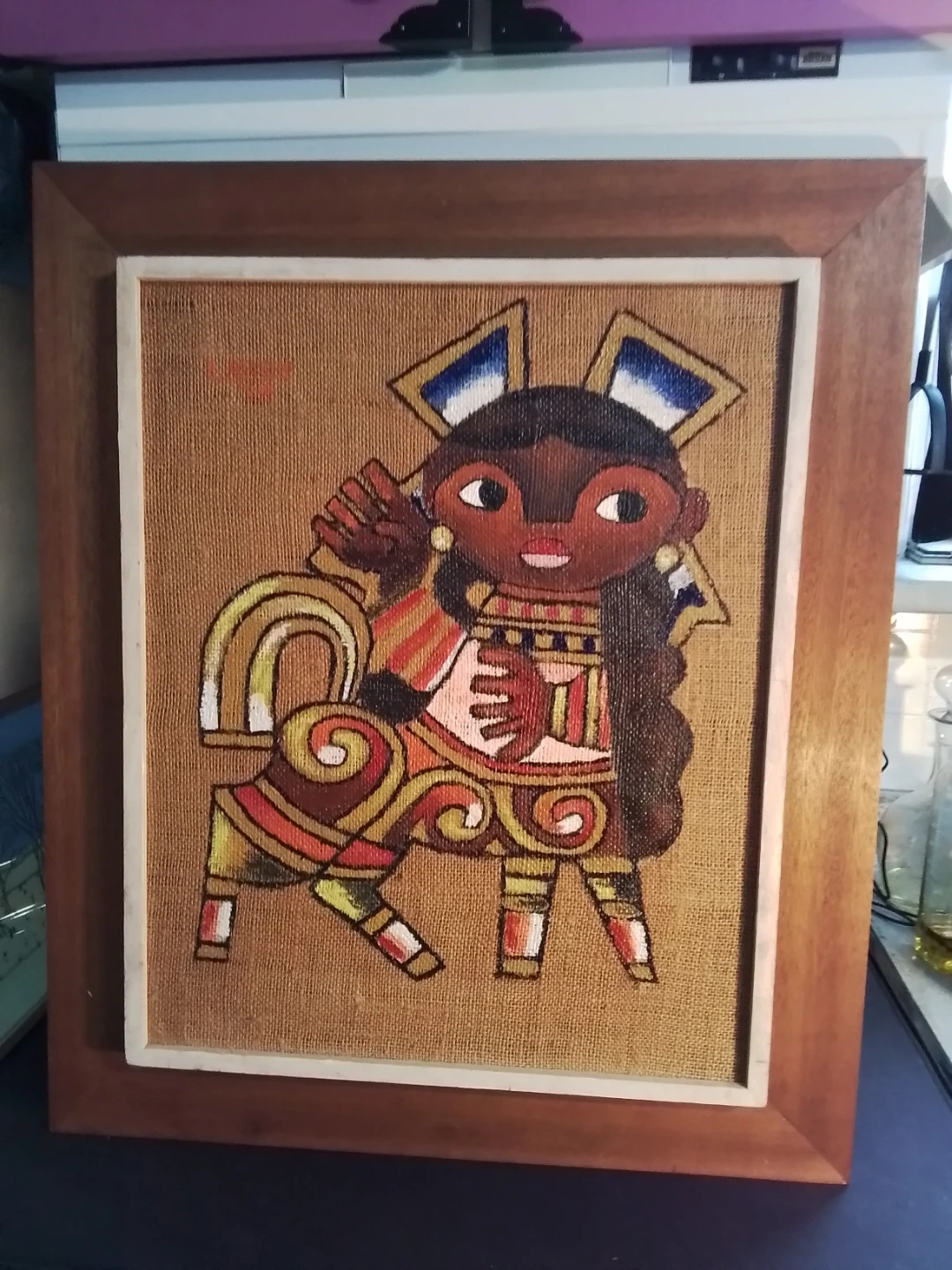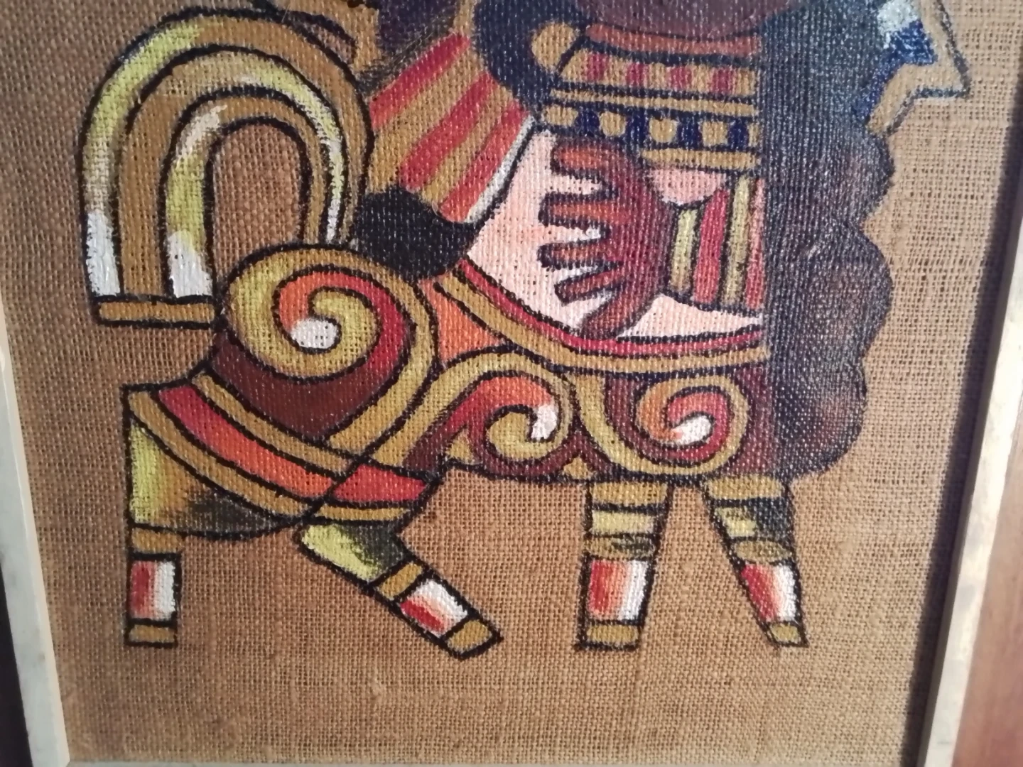Vintage Framed Painting on Burlap - Indigenous-Inspired Artwork signed by Larry 74?