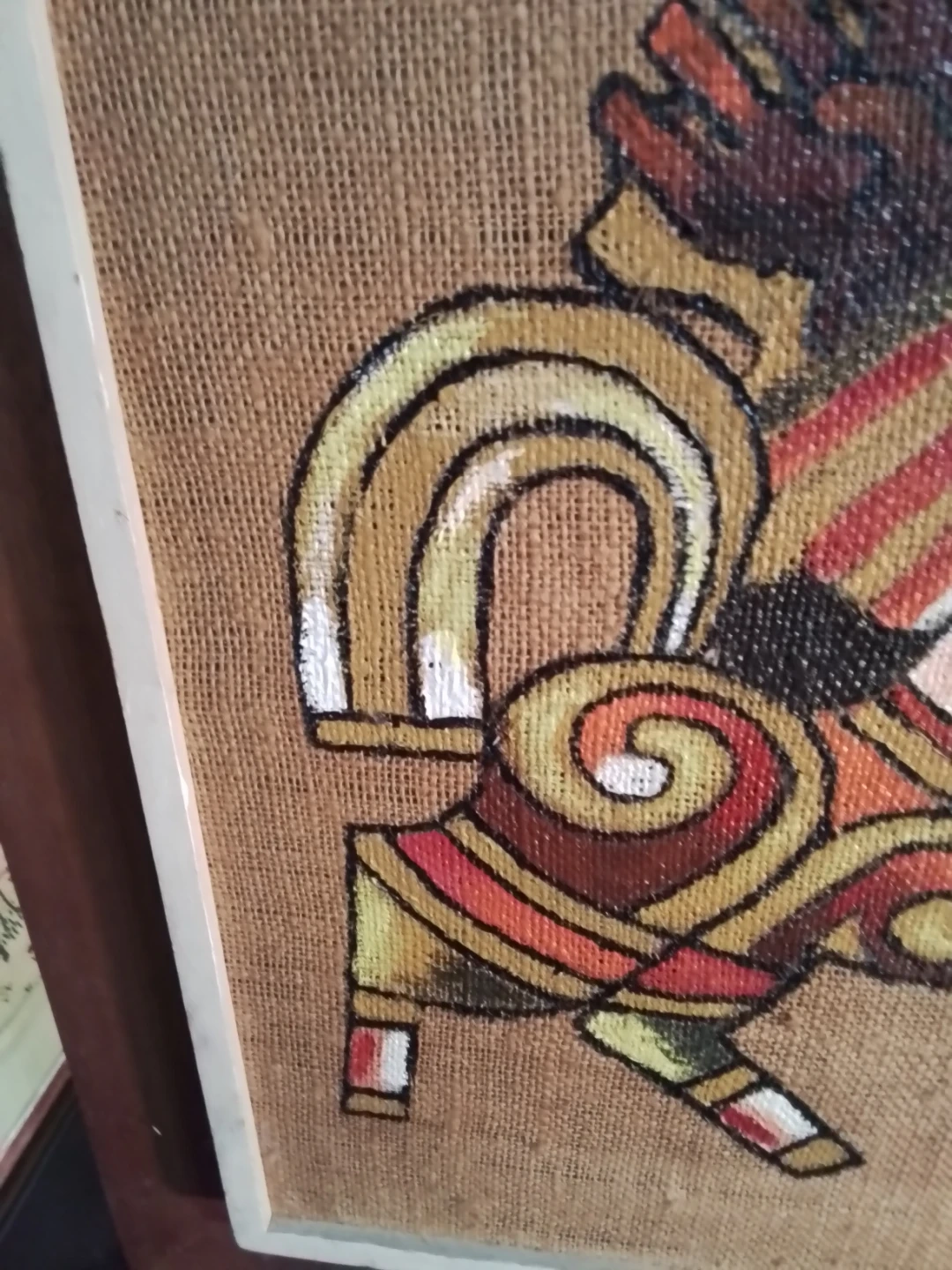 Vintage Framed Painting on Burlap - Indigenous-Inspired Artwork signed by Larry 74?