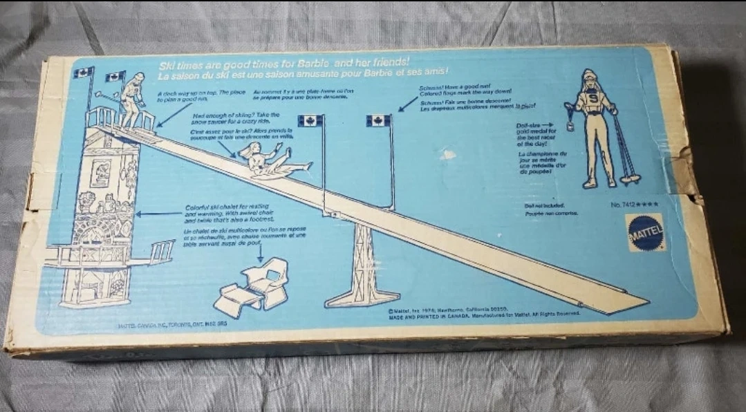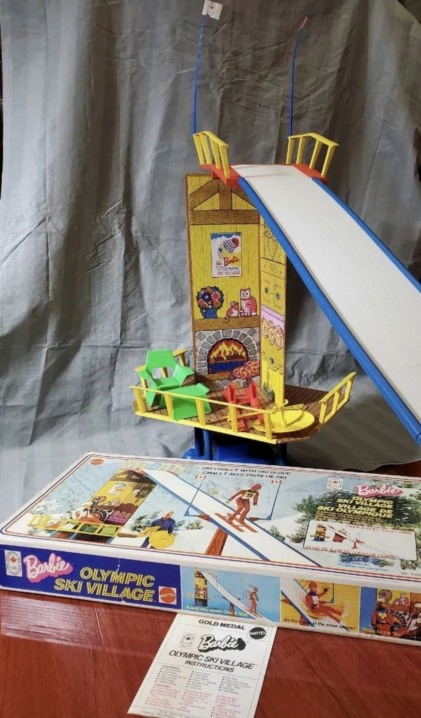 Here we have a nearly complete 1974 Barbie Olympic ski village. Canadian box with instructions. Still in great condition for its age.